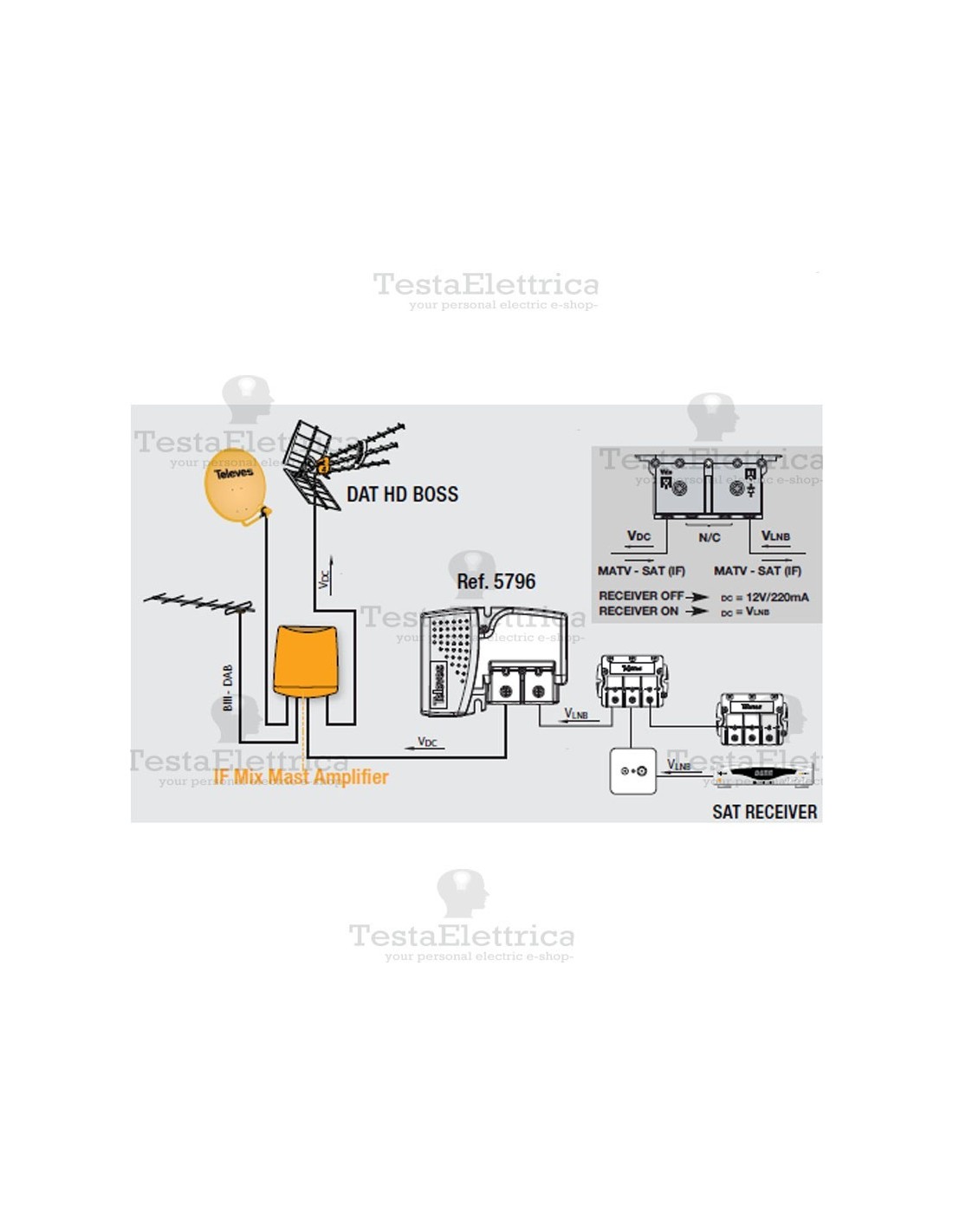 L'art. 5796  riconosce quando vi è un ricevitore satellitare, assicurando l'alimentazione dell'amplificatore in ogni momento.