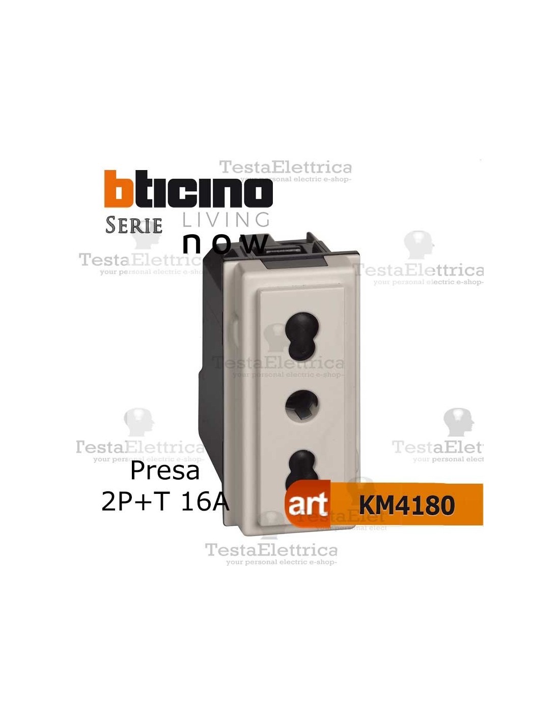 Modulo presa di corrente standard italiano 2P+T serie Living Now, da completare con apposita cover colore sabbia.