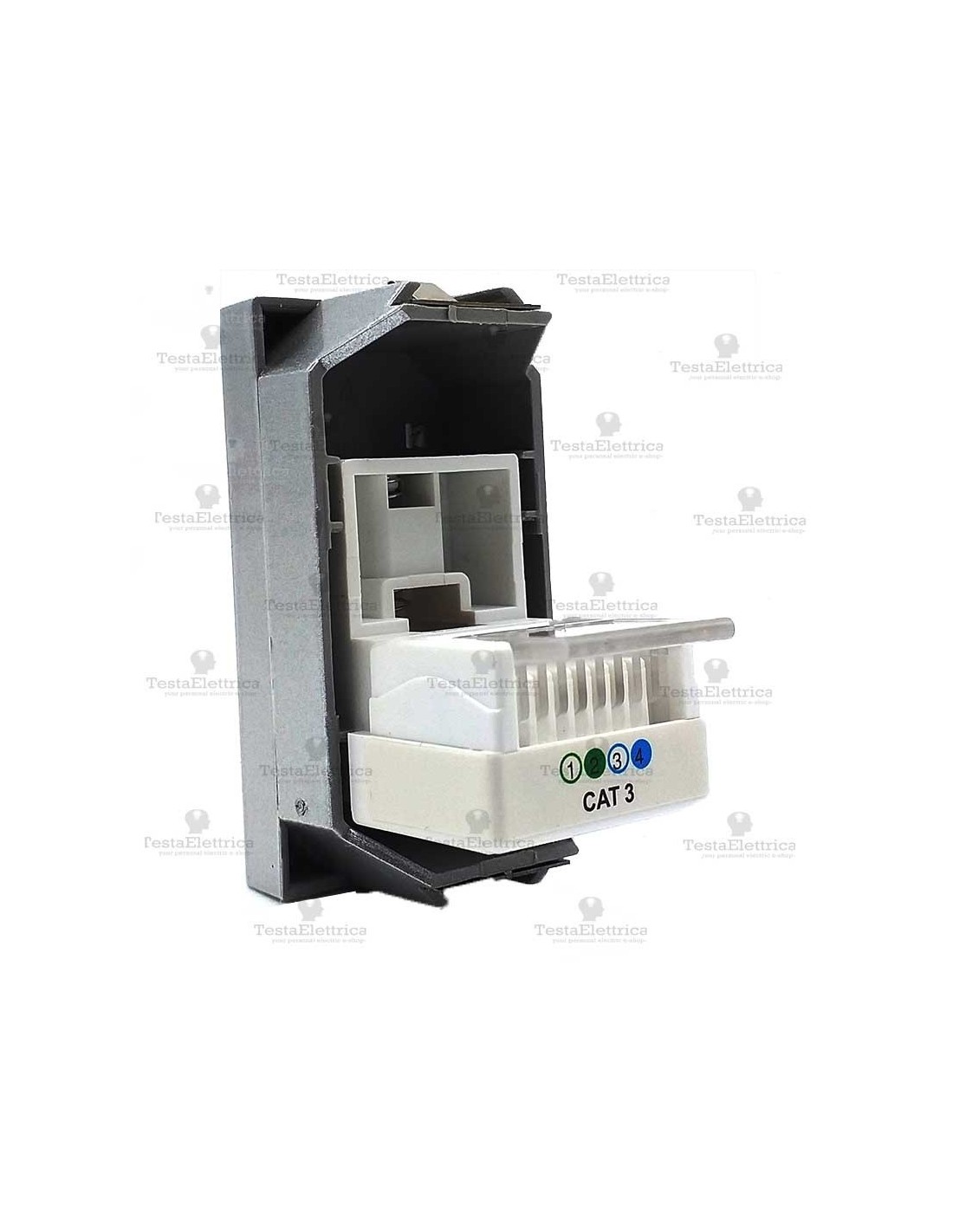 Connettore RJ11 perfettamente adattabile con le serie Axolute e Axolute Air della Bticino.