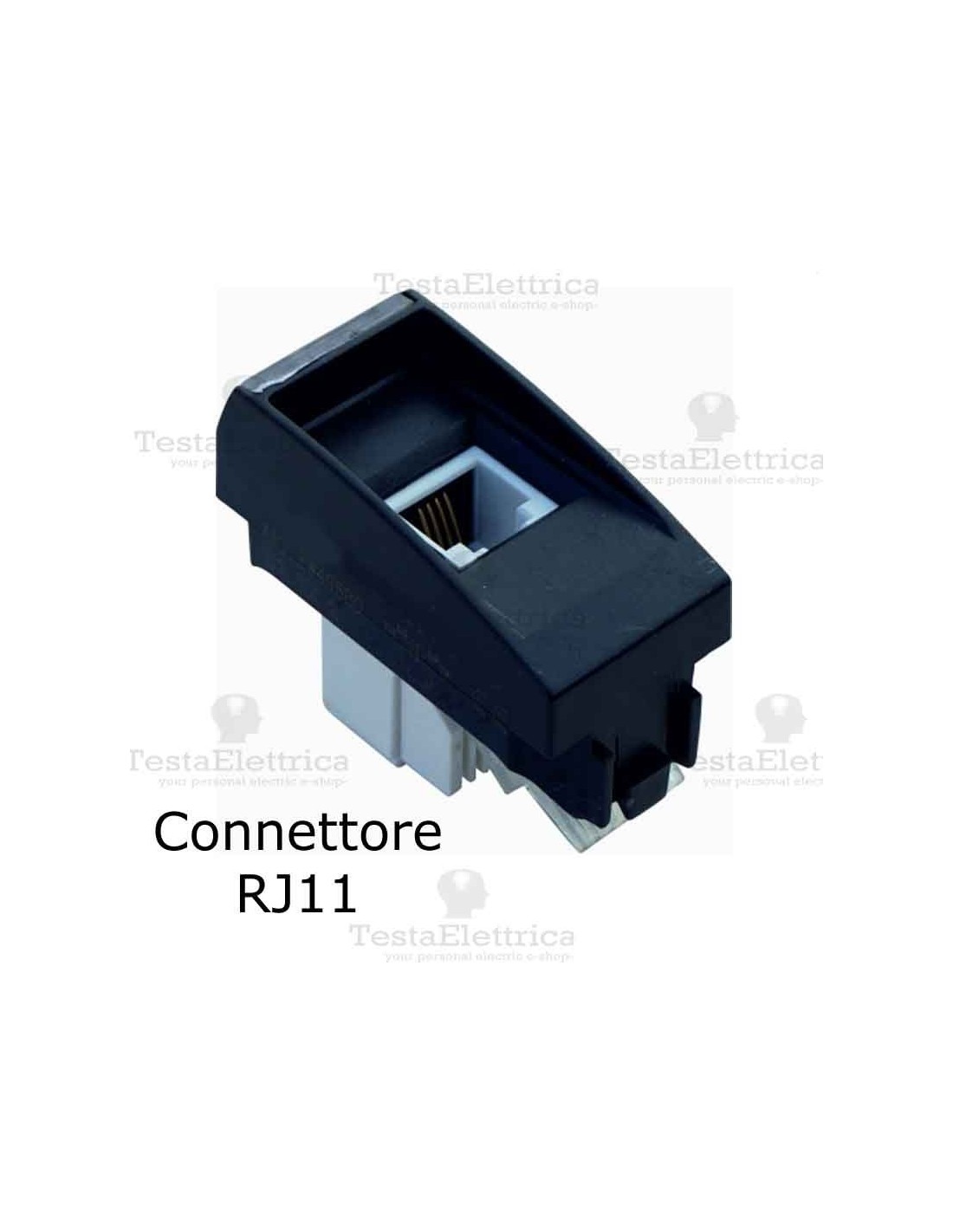 In impianti elettrici residenziali e professionali, modulo di connessione telefonica con montaggio ad innesto diretto in supporti Bticino serie Living art.4703  e LivingLight art. LNA4703 e in generale in tutte le calotte idrobox e le cassette predisposte per la serie LivingLight.