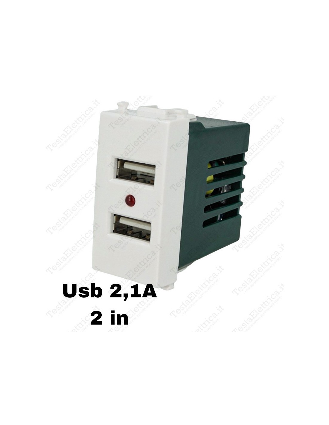 In impianti civili residenziali e professionali, modulo per ricaricare dispositivi mobili con montaggio ad innesto diretto in supporti (cestelli) Vimar serie Plana o compatibili  e in generale in tutte le calotte idrobox e le cassette predisposte per la serie Plana.