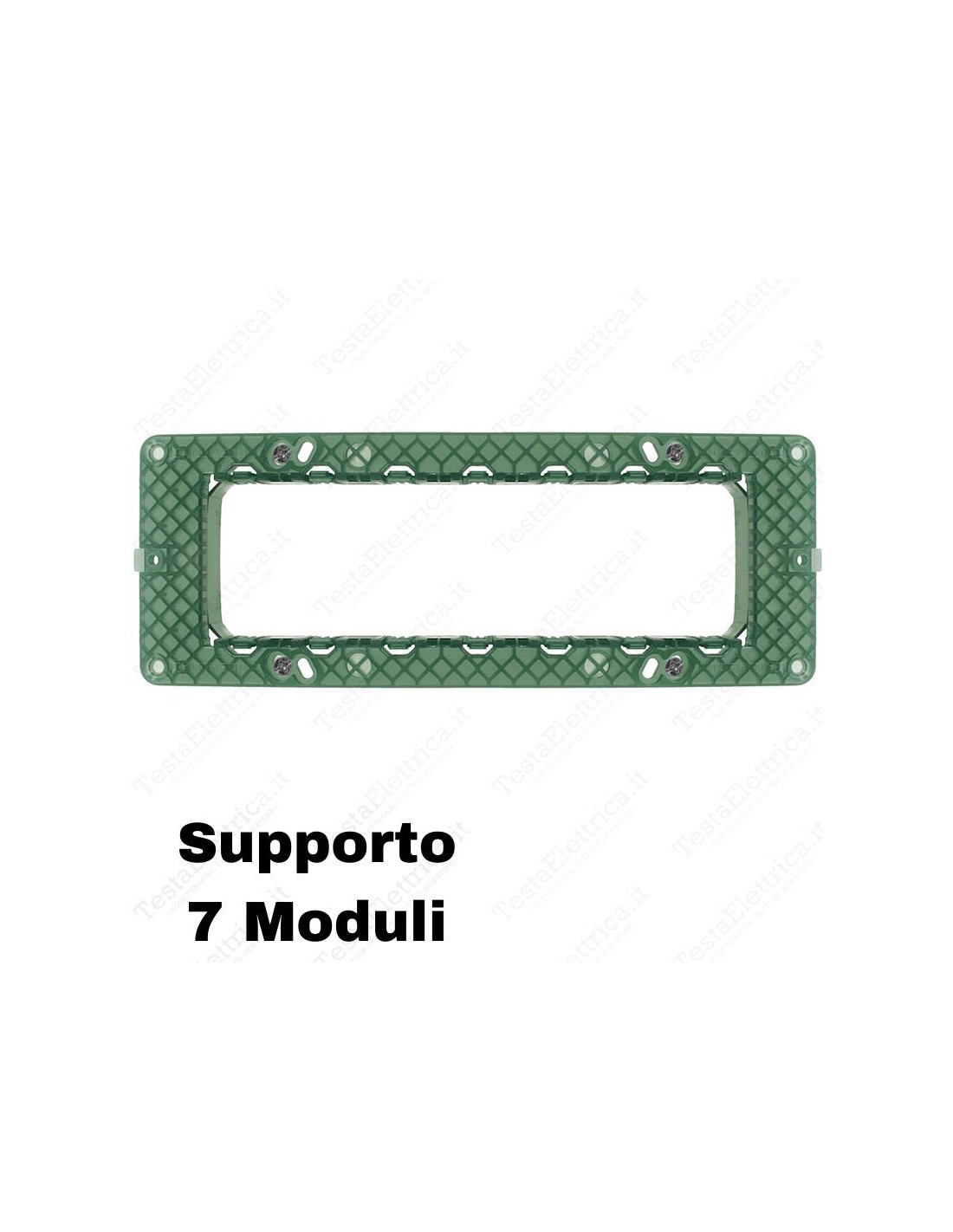 In impianti civili residenziali e professionali, supporto per frutti Vimar Plana originali o compatibili, da completare con placche Vimar Plana originali o compatibili a 7 Moduli.