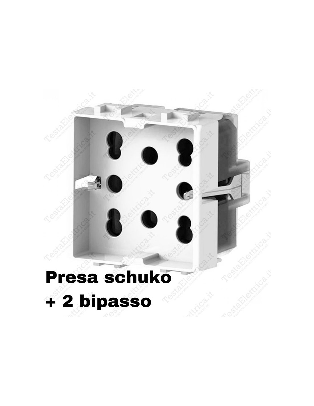Nello stesso spazio (2 moduli o 2 posti) è possibile inserire alternativamente una spina schuko o 2 prese italiane 10/16A.