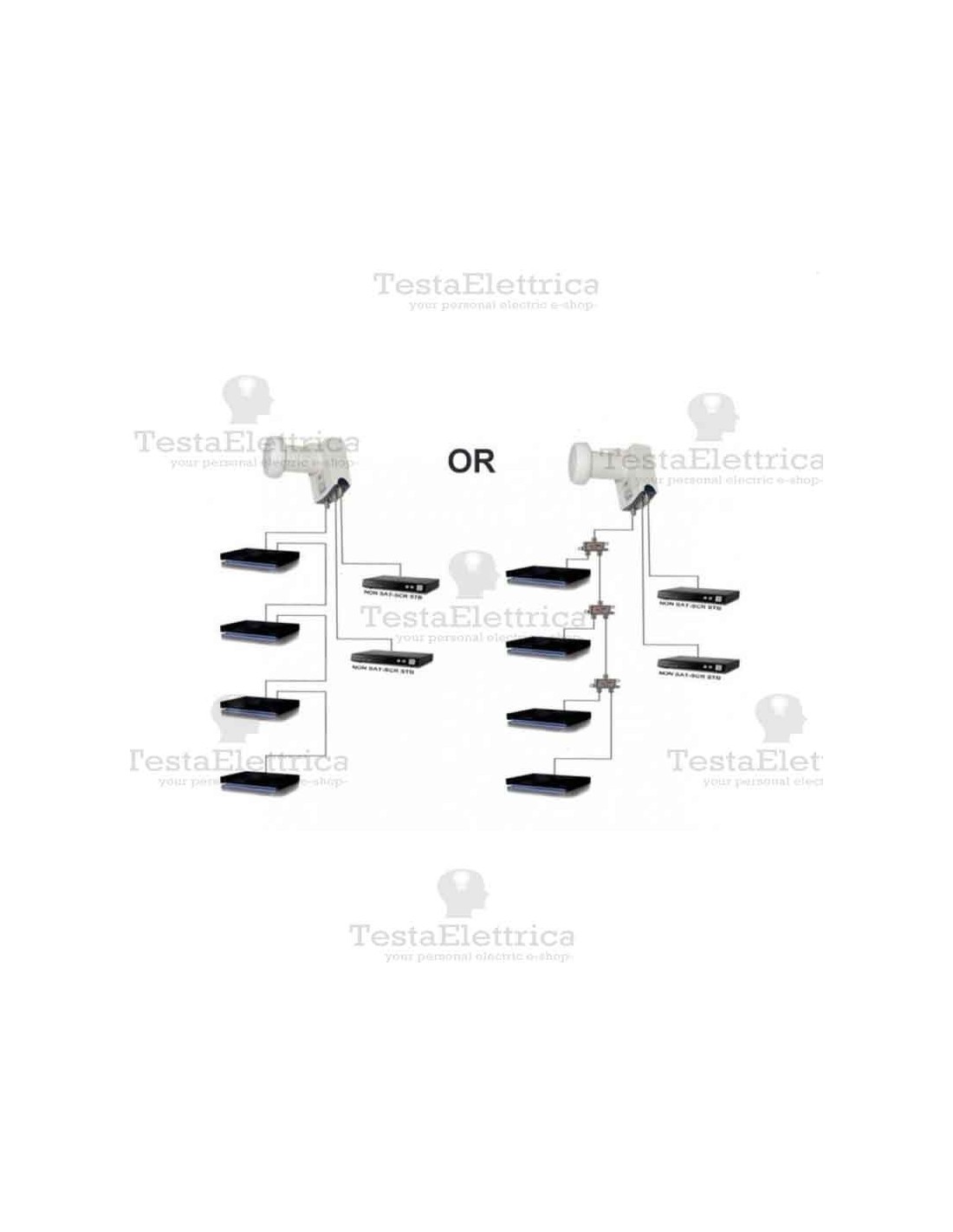 SUPPORTA  4 RICEVITORI SCR (decoder deve avere la funzione SCR unicable) con un unico cavo + due uscite universali per ricevitori standard con gli altri tre cavi fino ad un massimo di sette ricevitori satellitari.
