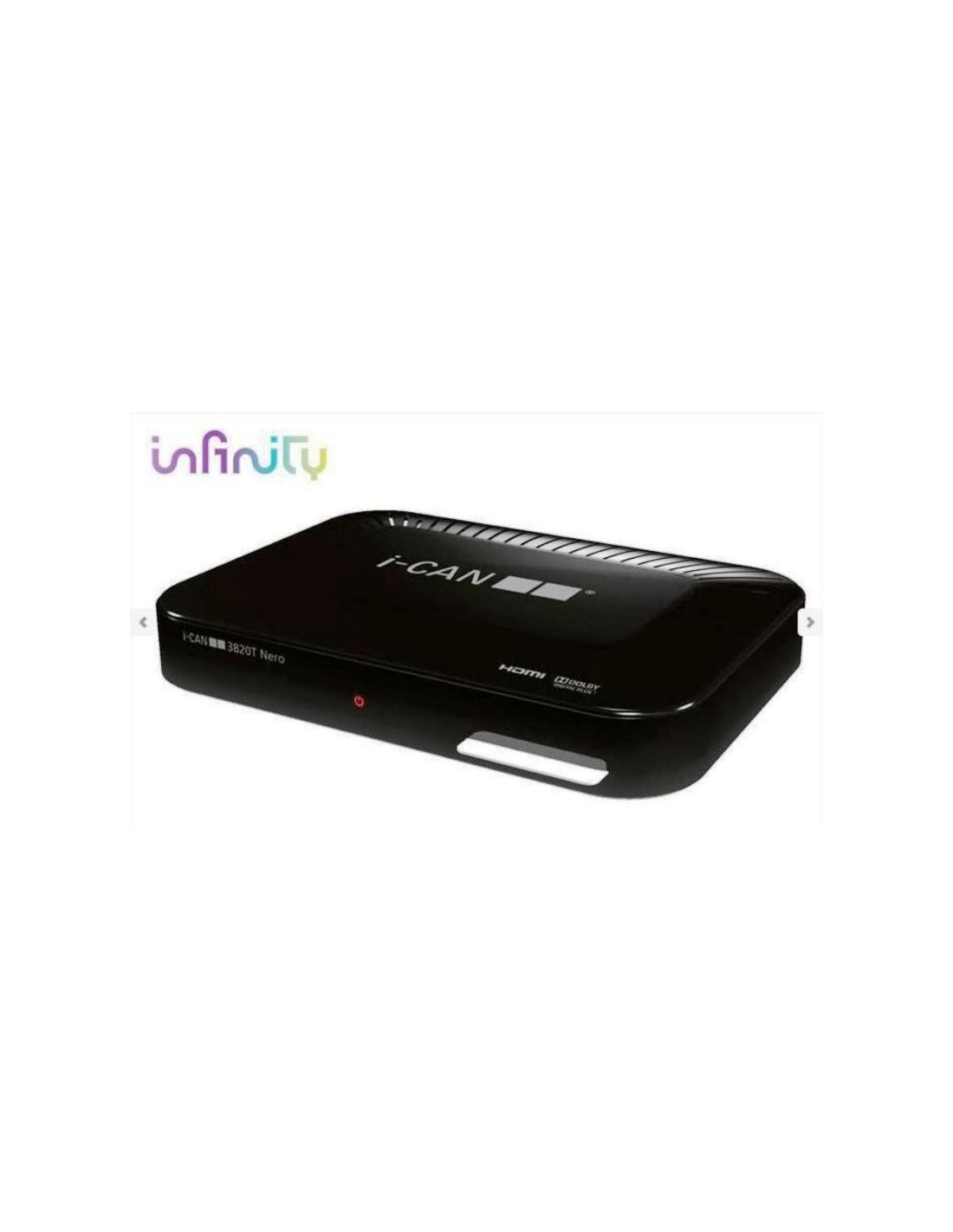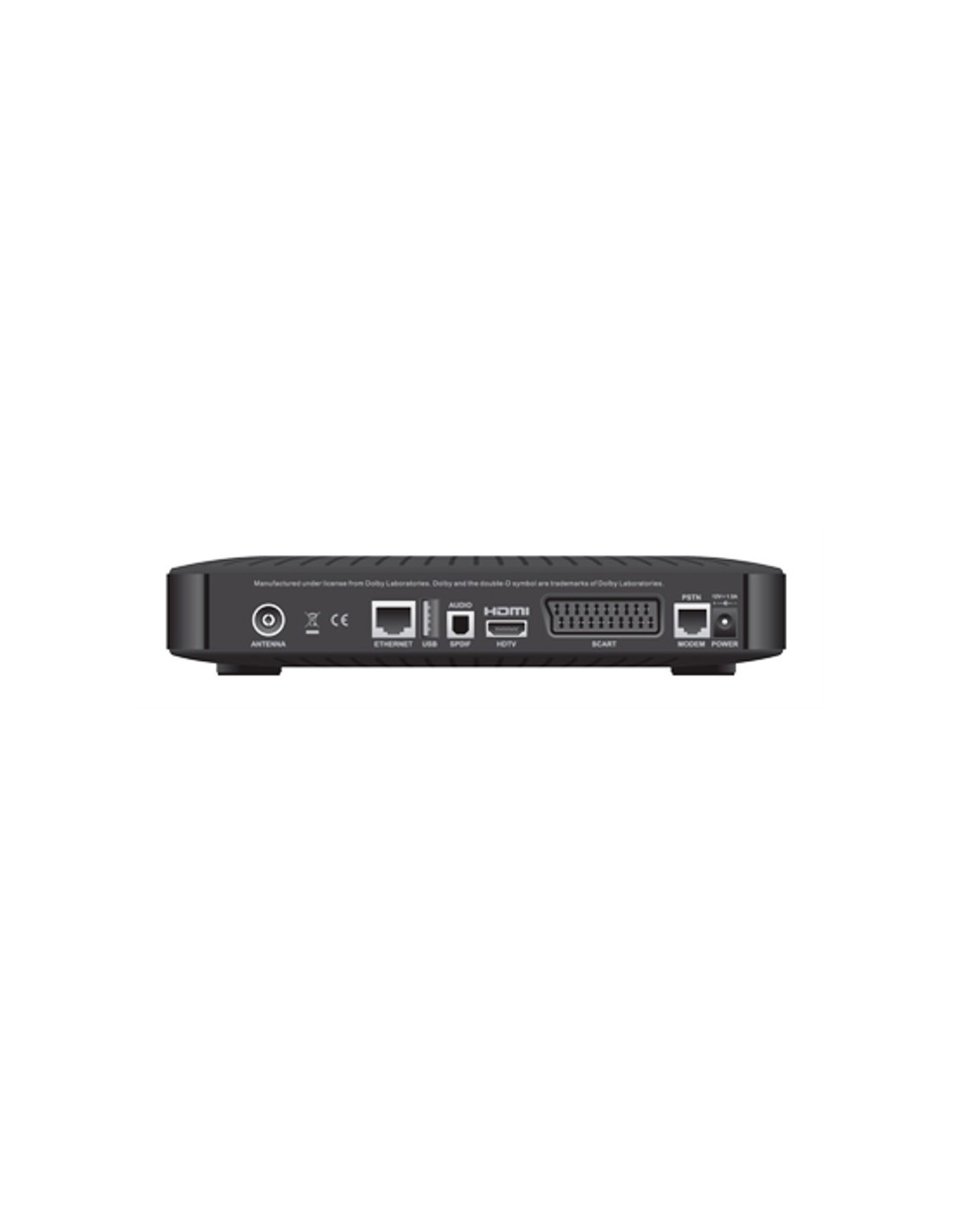 Audio MPEG-1 layer 1, 2, 3 Dolby Digital Plus Certificazioni DGTVi Bollino Gold HDMI, HDCP MHP 1.1.3 Norme EU, Marchiatura CE DVB compliant Mediaset Premium NETTV Interattività Ethernet 10/100 Mbit PSTN Modem v.34 Panello frontale 1 slot Smart Card 1 Indicatore LED Bianco o Blu /Rosso Connettività Antenna (RF) DVB-T SCART HDMI per TV HD S/PDIF audio ottica per connessione a Home Cinema RJ-11 modem port RJ-45 Ethernet port per applicazioni MHP e connessione Internet USB 2.0 Ingresso DC per alimentazione |