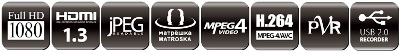 - Riproduzione da HDD e Pen Drive di File VIDEO (MKV, M2TS, AVI, MPEG 2/4, VOB, XVID HD ecc..), AUDIO (WAV, MP3), IMMAGINI (JPEG, PNG, BMP).