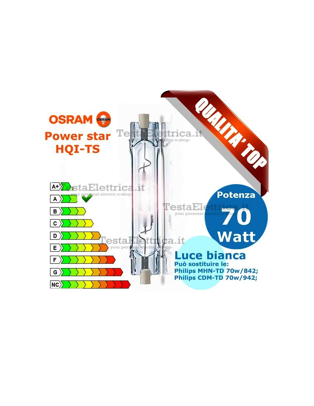 Sotituisce tranquillamente la Philips mhn-td 70w/842 UV block; la MASTER Colour CDM-TD 70w/942.