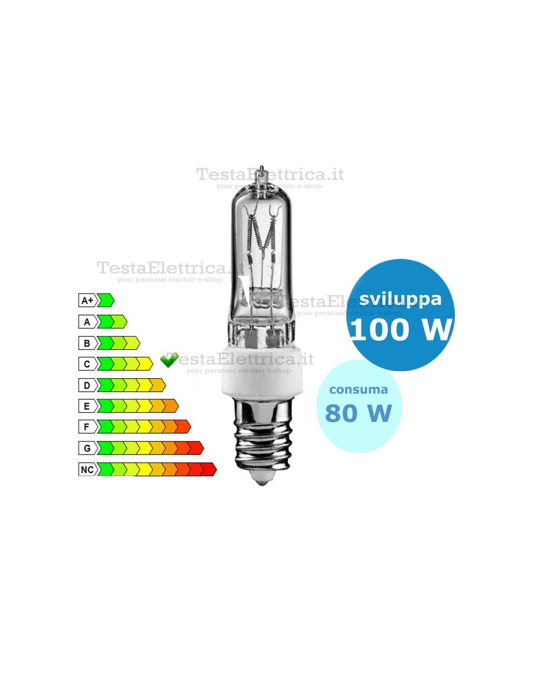 Lampadina Halo energy tubolare alogena 80 Watt = 100 Watt attacco E14.