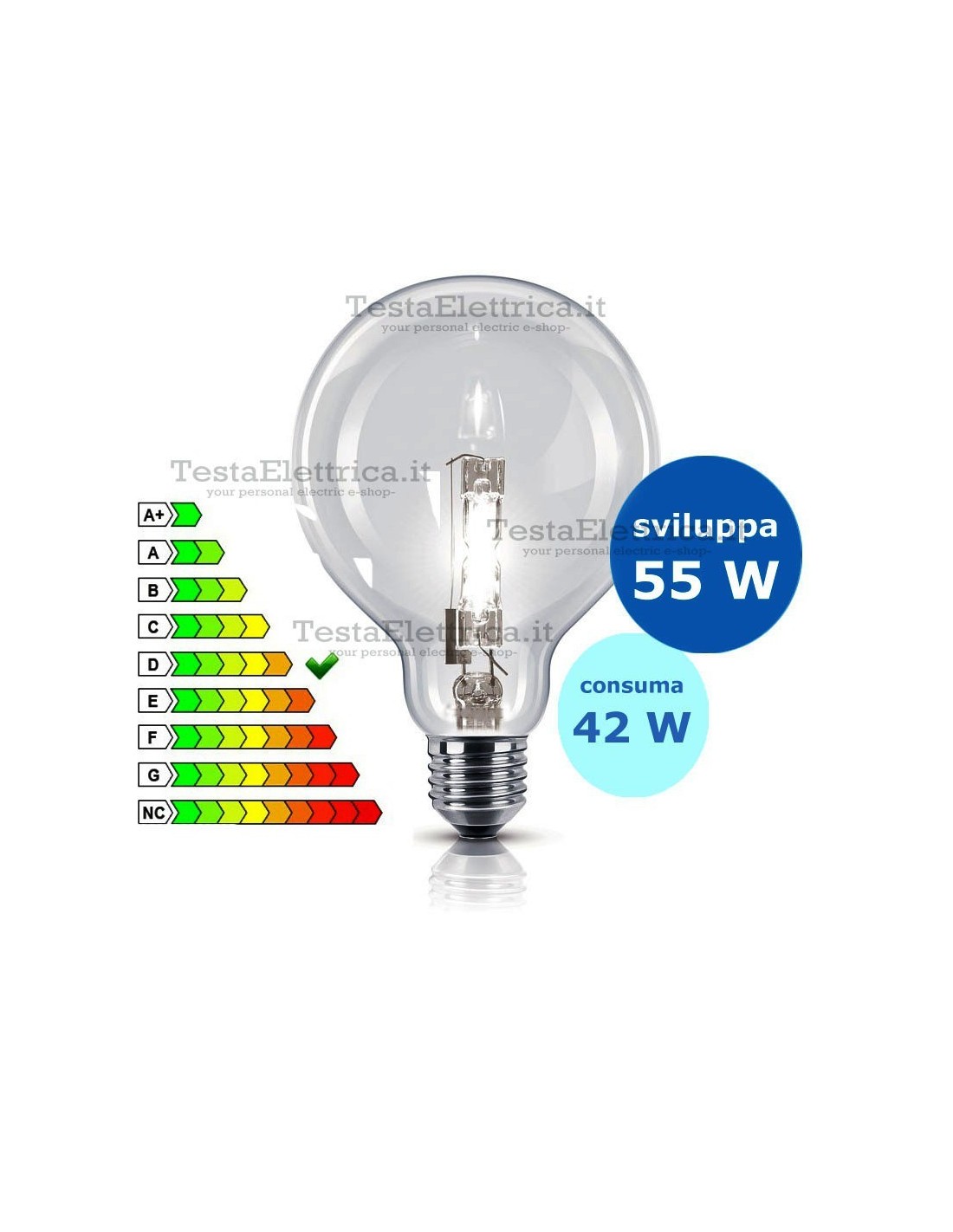 Lampadina alogena a globo 70 Watt = 91 Watt attacco E27.