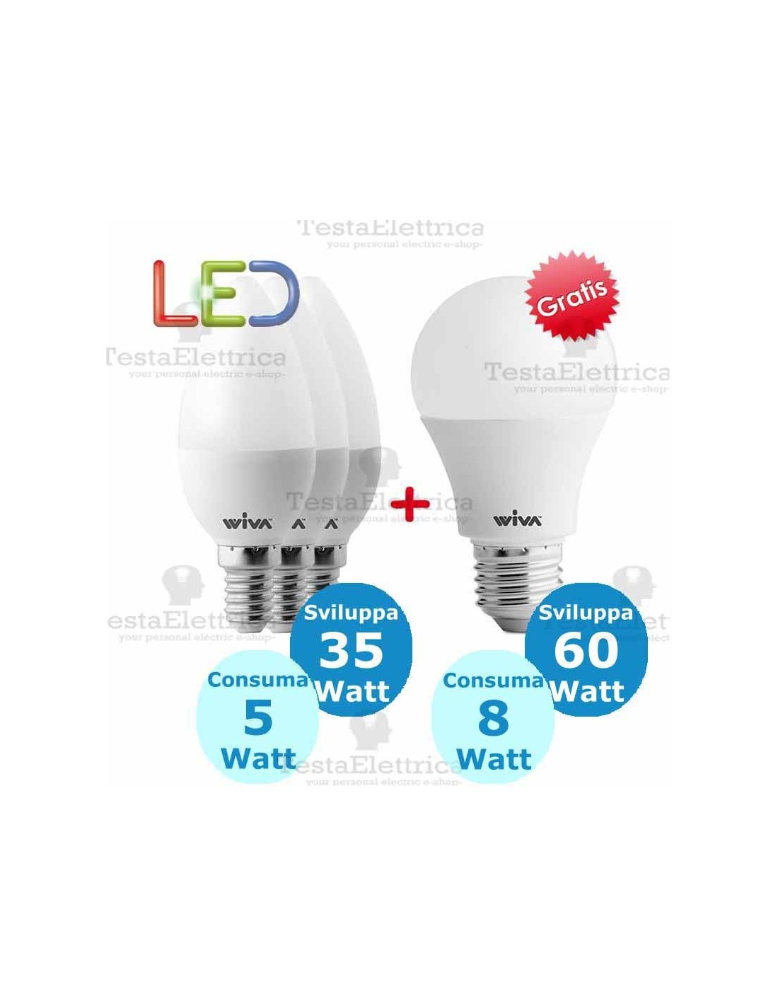 Promo 3 Pz. e14 5 watt + 1 Pz. e27 8w OMAGGIO