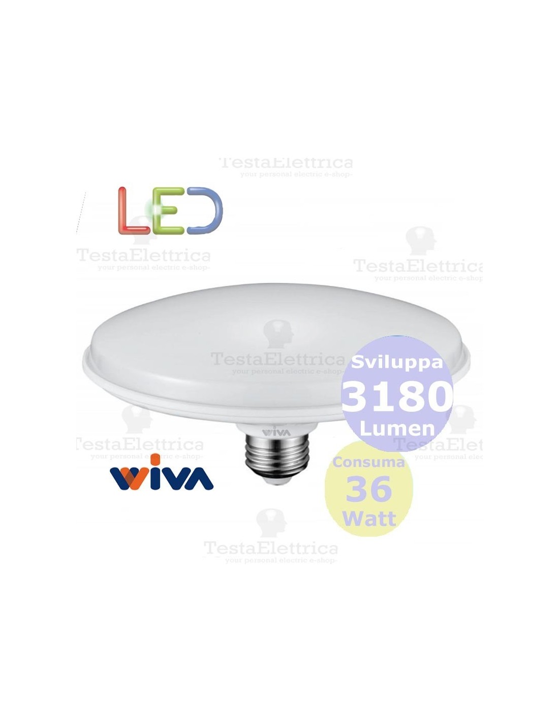 Lampadina a led circolare E27 36 Watt Wiva