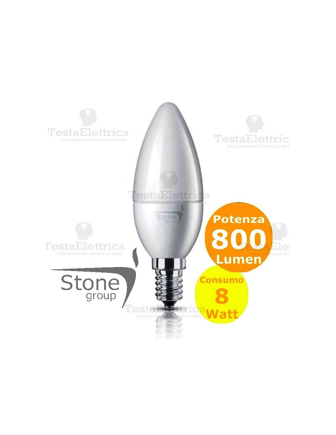 Lampadina a led candela 8 Watt E14 Stone