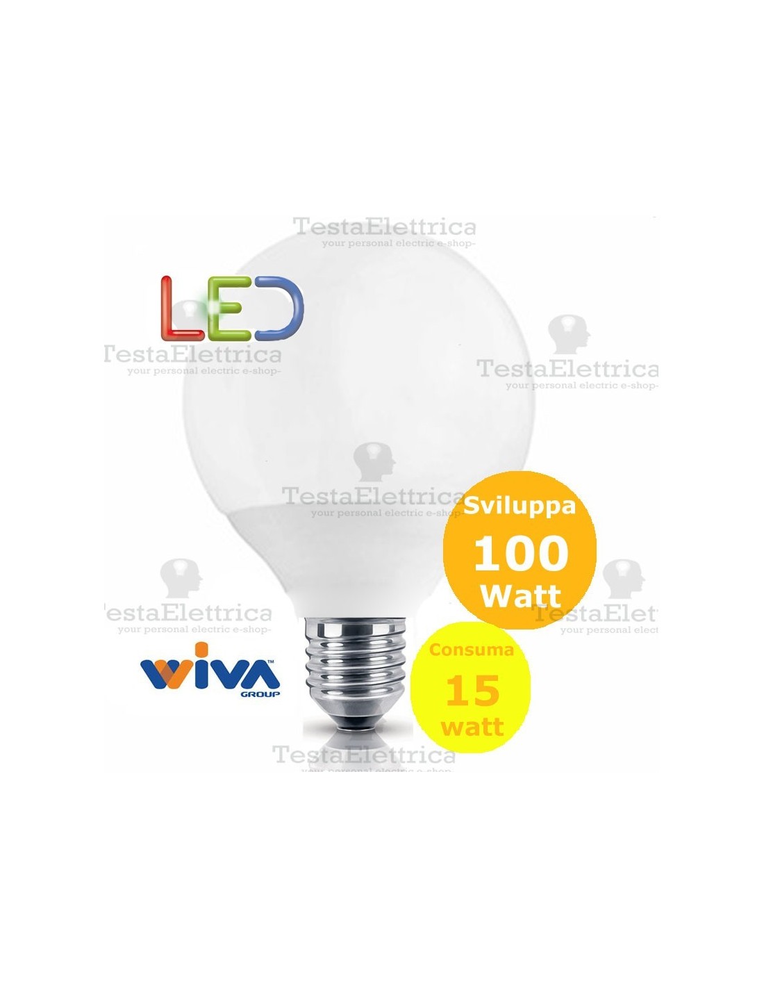 Lampada Led a forma di Globo 15 Watt = 105 Watt ad incandescenza EFFETTIVE.