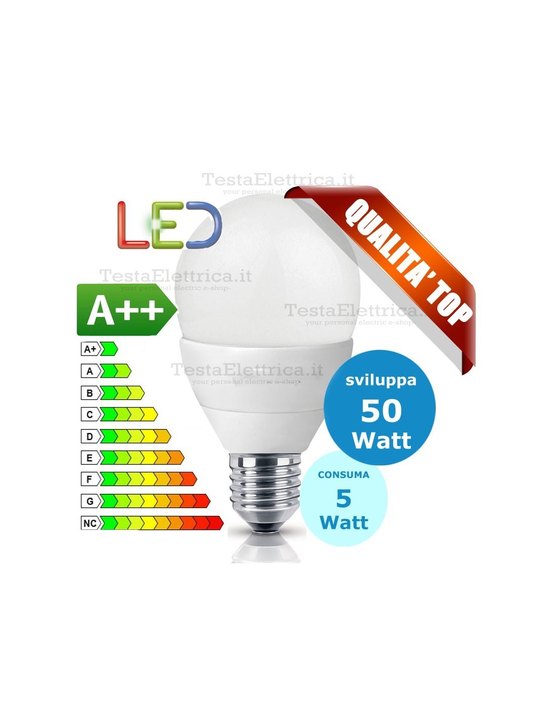 Bassissimo consumo energetico dalla classica forma a sfera, per funzionamento a tensione di rete, direttamente sostituibile ad una sorgente con attacco E27.