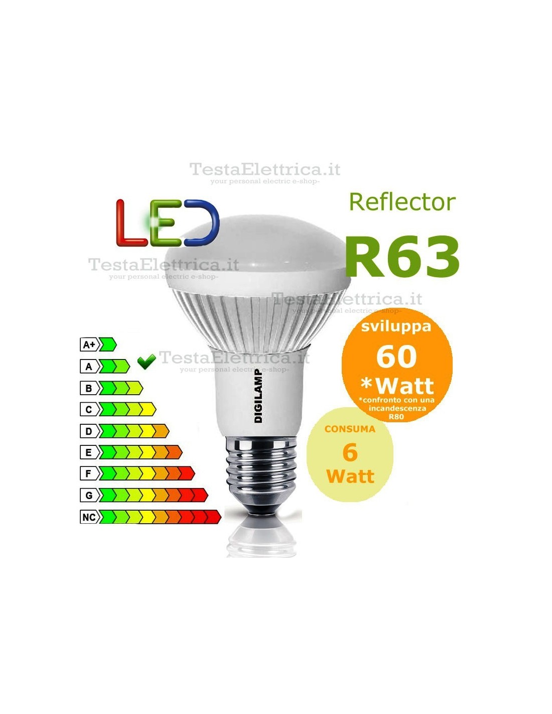 Faretto Spot a Led tipo Reflector R63 E27 6 Watt = 410 Lumen
