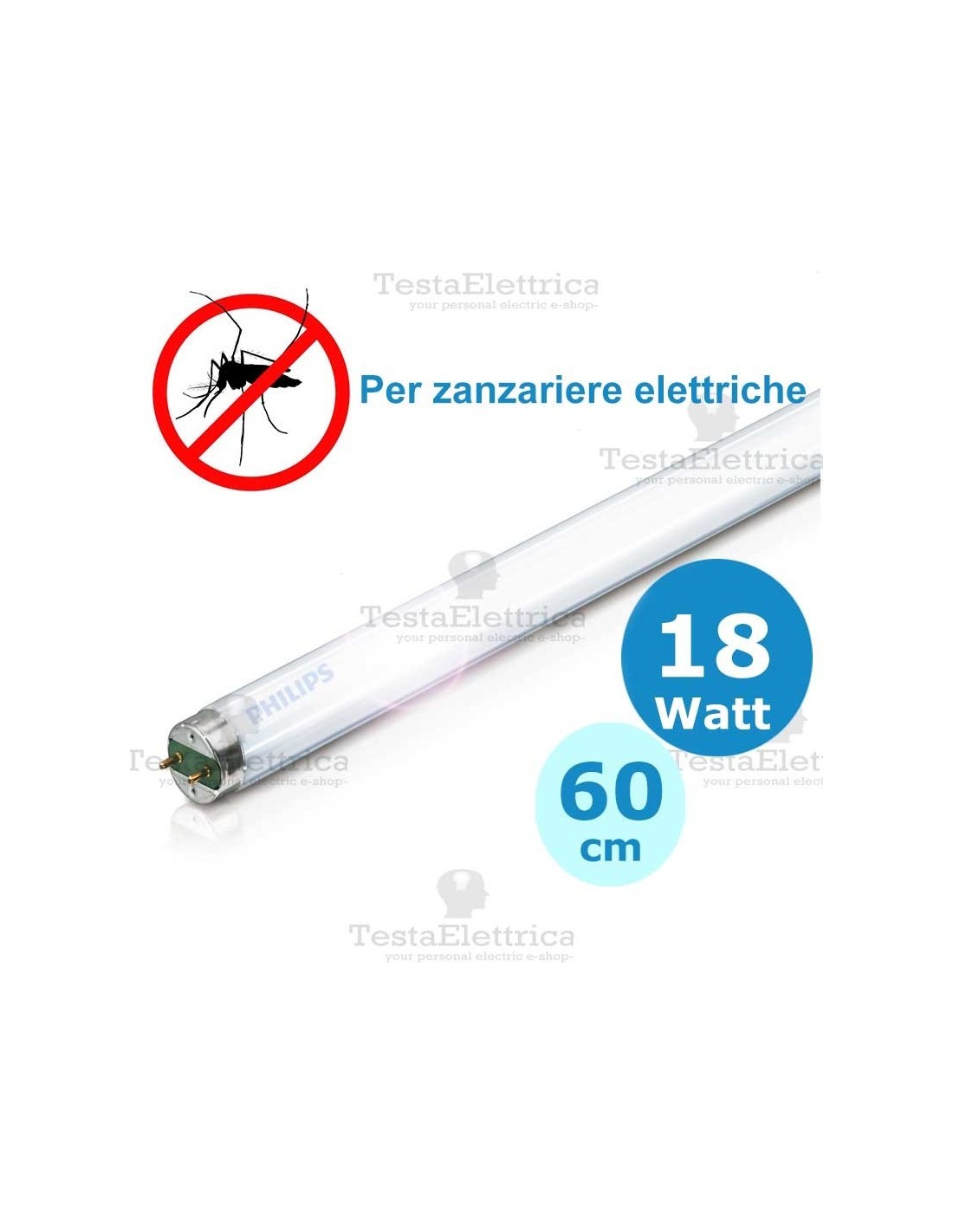 Lampade tipo fluorescente lineare standard 18 watt attacco G13, lunghezza 60 centimetri, ideale nella sostituzione di lampade blu in zanzariere elettriche.