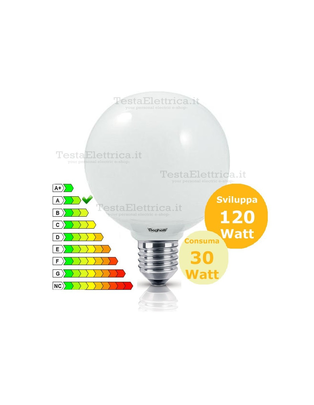 Lampada Fluorescente a forma di Globo 30 Watt = 120 Watt ad incandescenza EFFETTIVE.