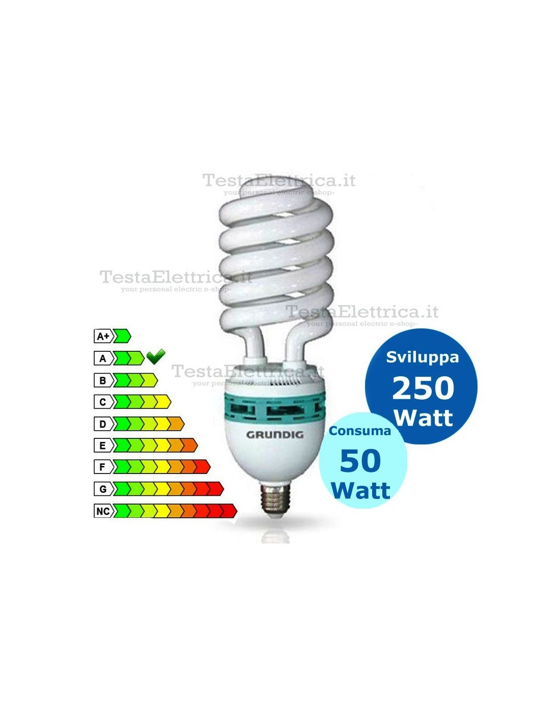 50Watt = 250 Watt ad incandescenza .