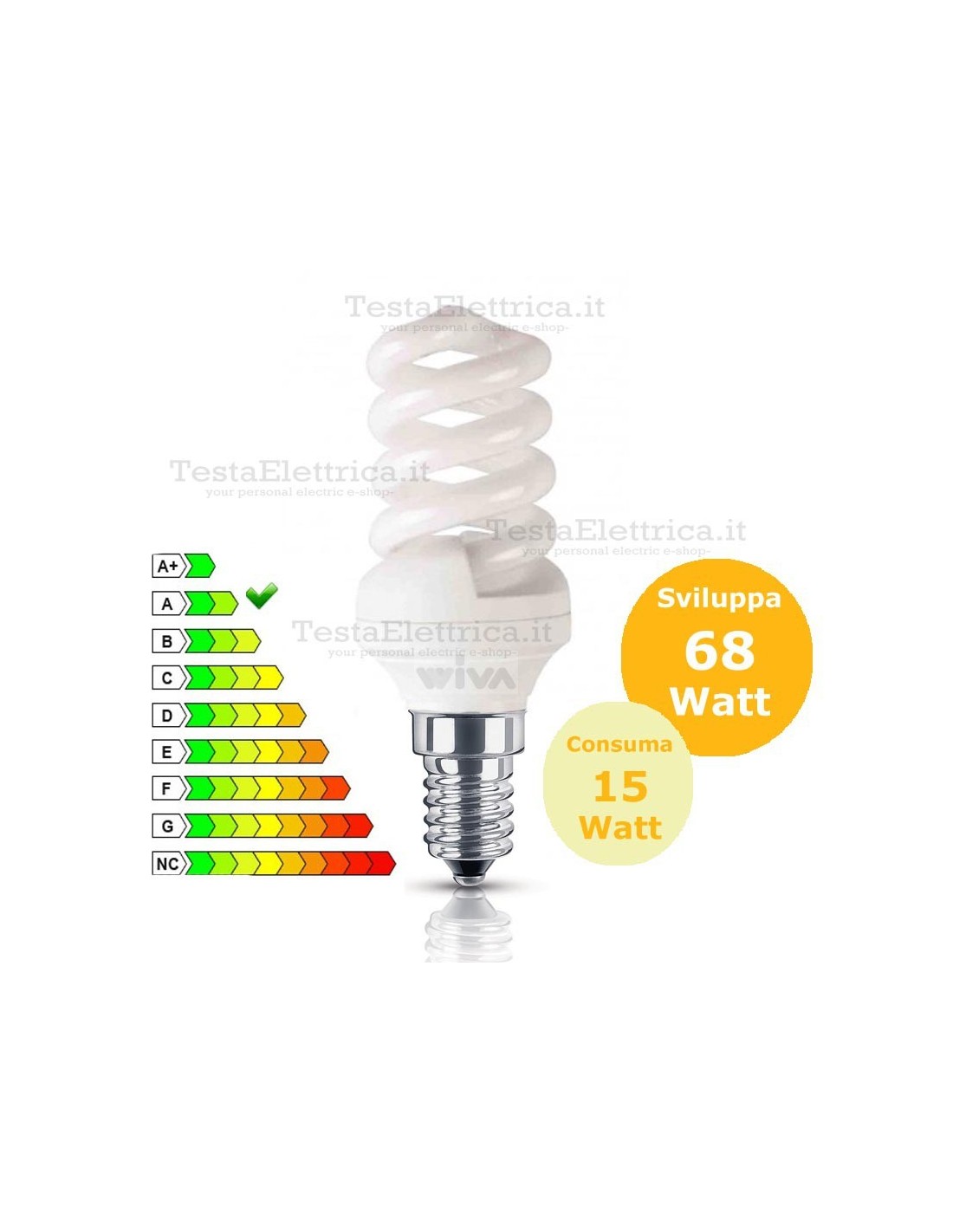 15 Watt = 68 Watt ad incandescenza .