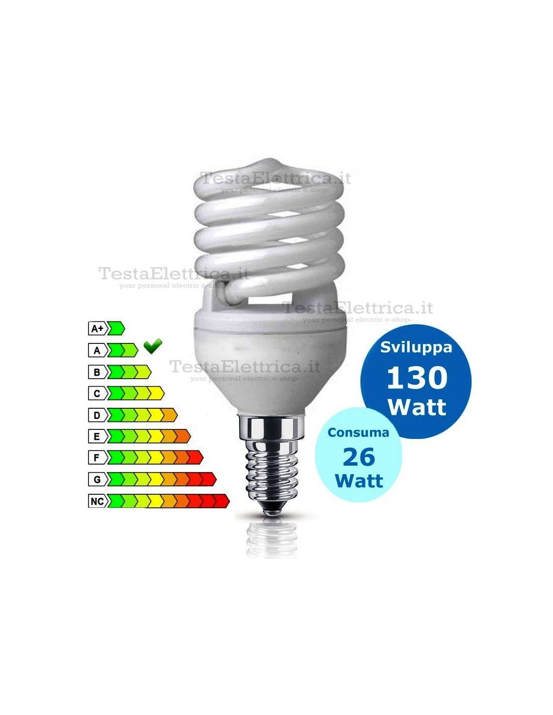 Lampada Fluorescente  a Spirale 26 Watt = 130 Watt ad incandescenza EFFETTIVE.