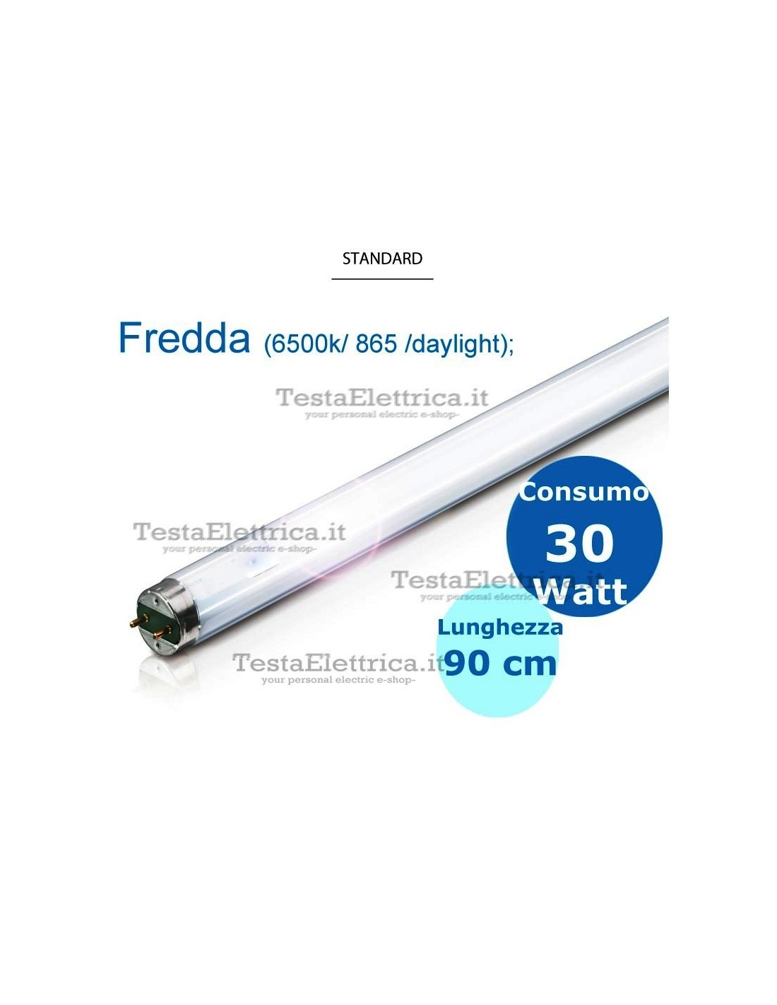 Lampade  tipo fluorescente lineare standard 30 watt attacco G13, lunghezza 90 centimetri.