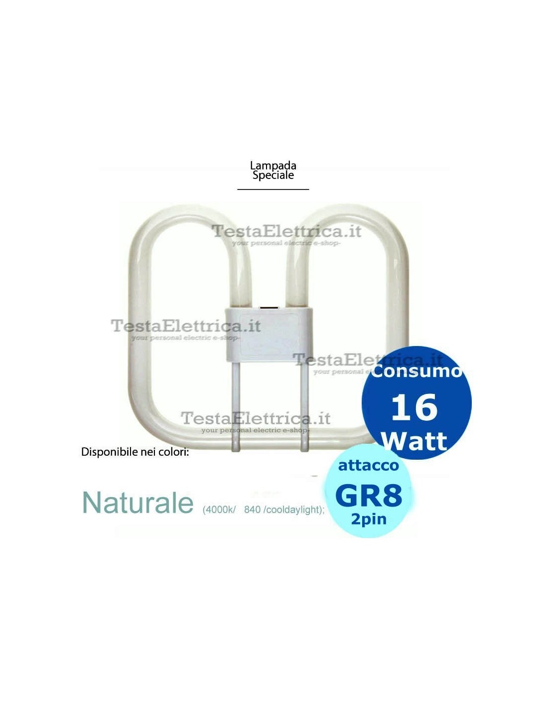 Lampada Fluorescente Compatta non integrata 16 watt attacco Gr8 a 2 pin.