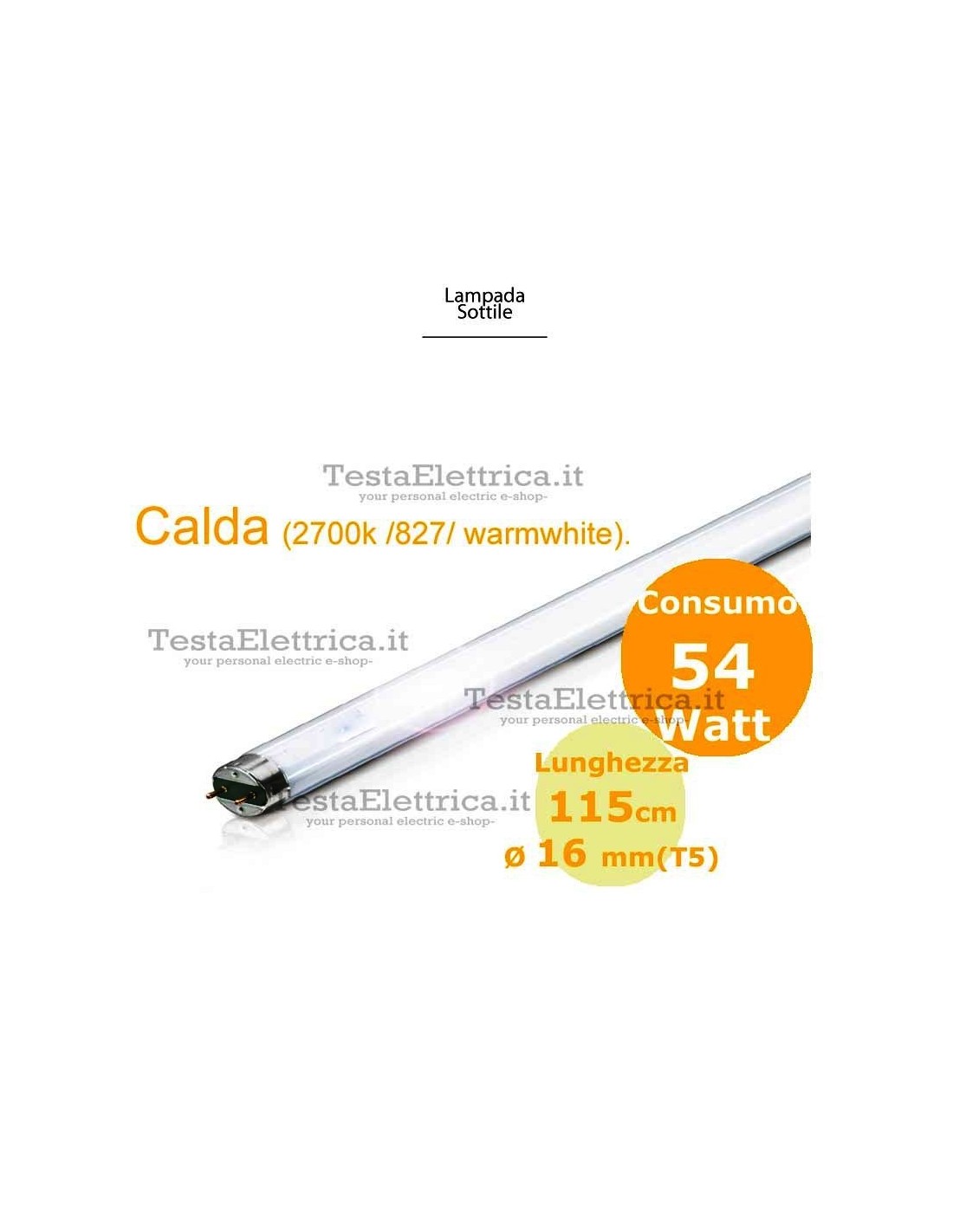 Lampade tipo fluorescente lineare t5 (16 mm di diametro) 54 watt attacco G5, lunghezza circa 115 centimetri.