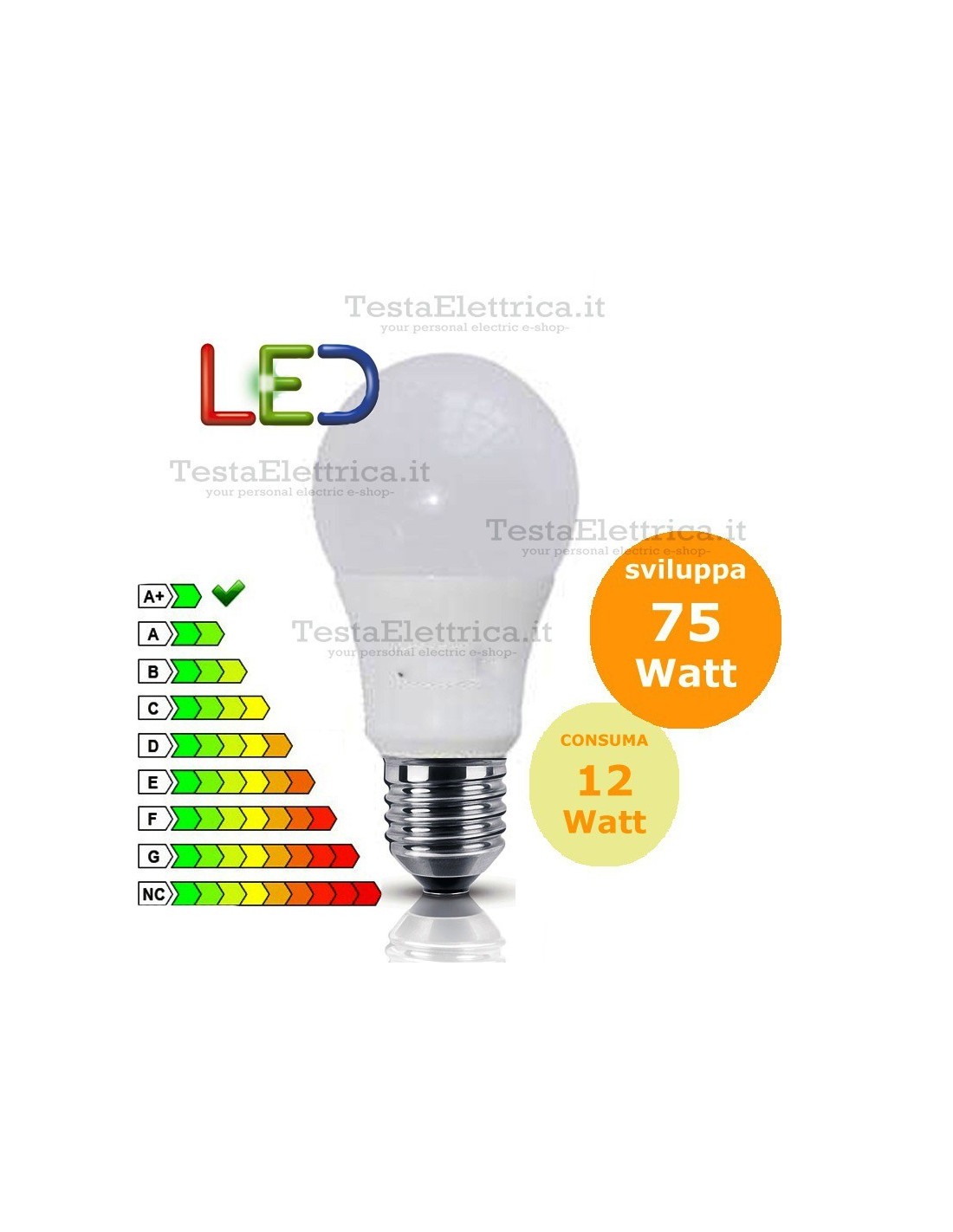Lampada Led a goccia 12 Watt = 75 Watt ad incandescenza.