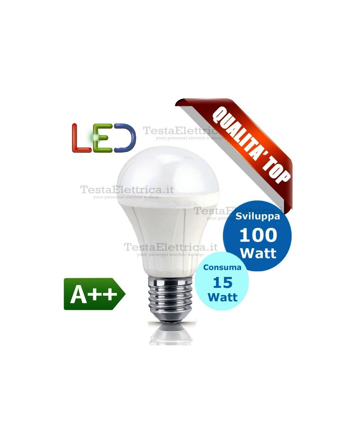 Lampada Led  a goccia 15 Watt = 100 Watt ad incandescenza.