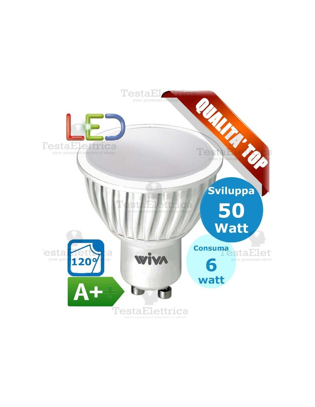 lampadina a led spot tipo dicroica 12 volt attacco GU5,3 5 Watt = 30 Watt Ad alogeni.