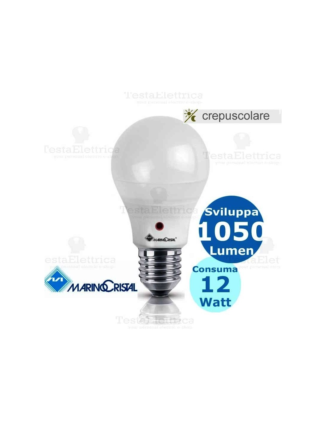 Lampadina a led con doppio sensore crepuscolare E27 12 Watt Marino Crystal