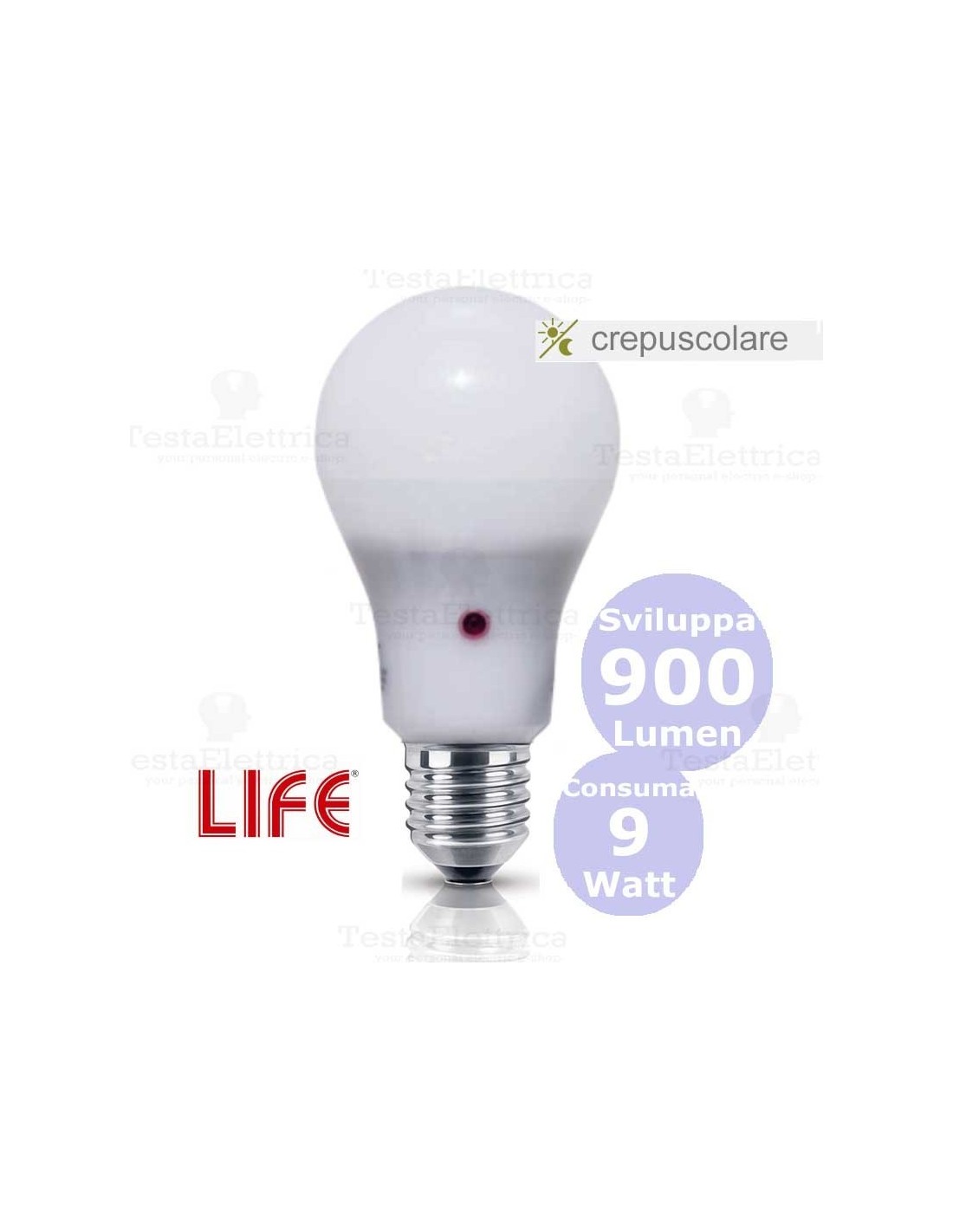 Lampadina led sensore crepuscolare 9 watt life