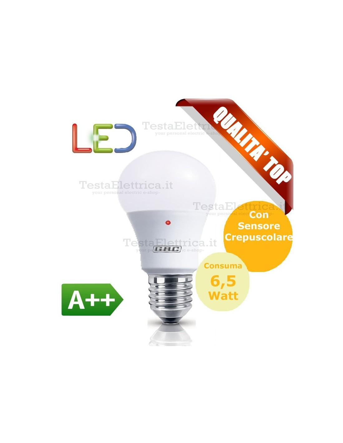 Lampada Led con sensore crepuscolare a goccia 10 Watt = 80 Watt ad incandescenza.