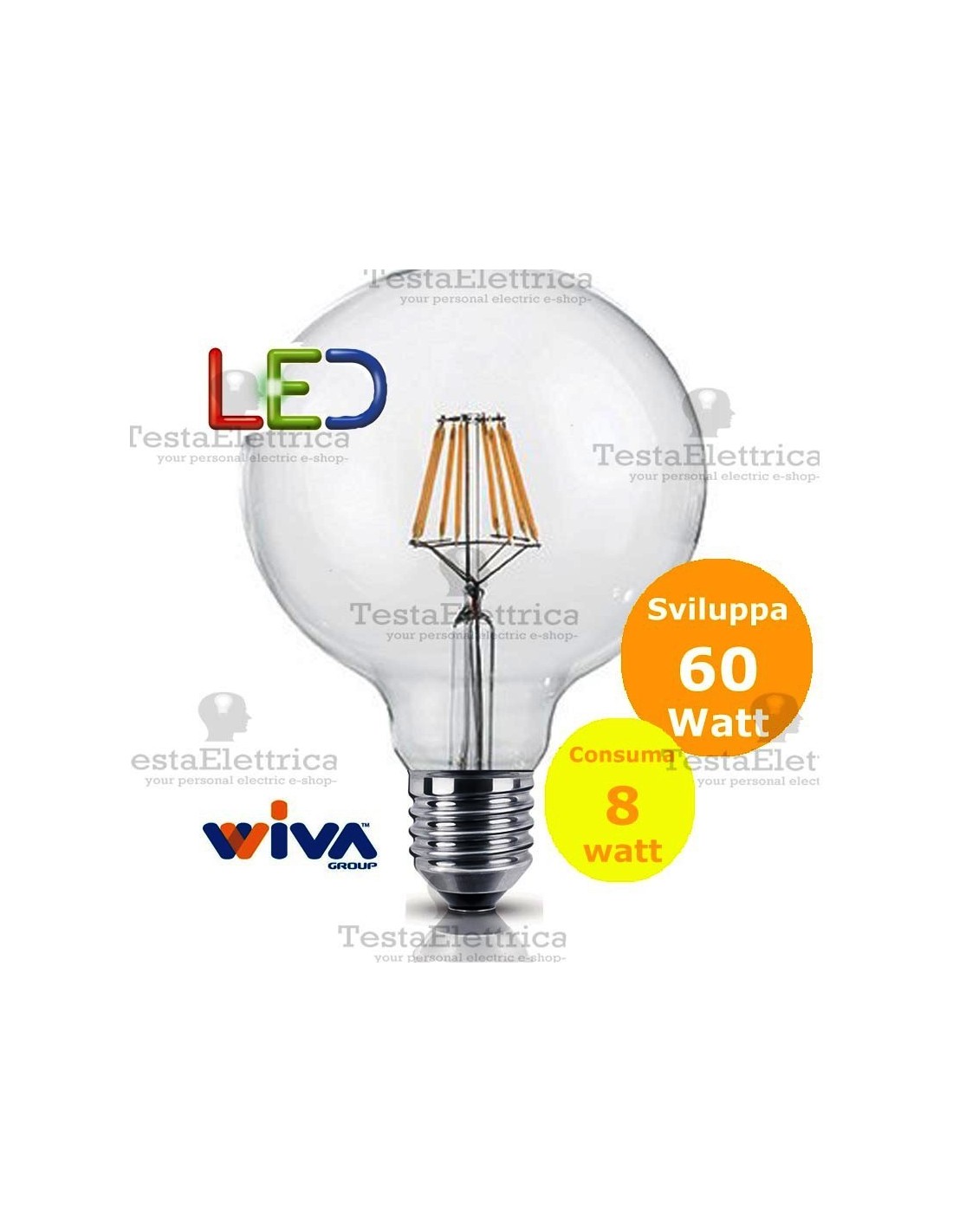 Lampadina a Wireled  Globo 8 Watt E27 trasparente Wiva