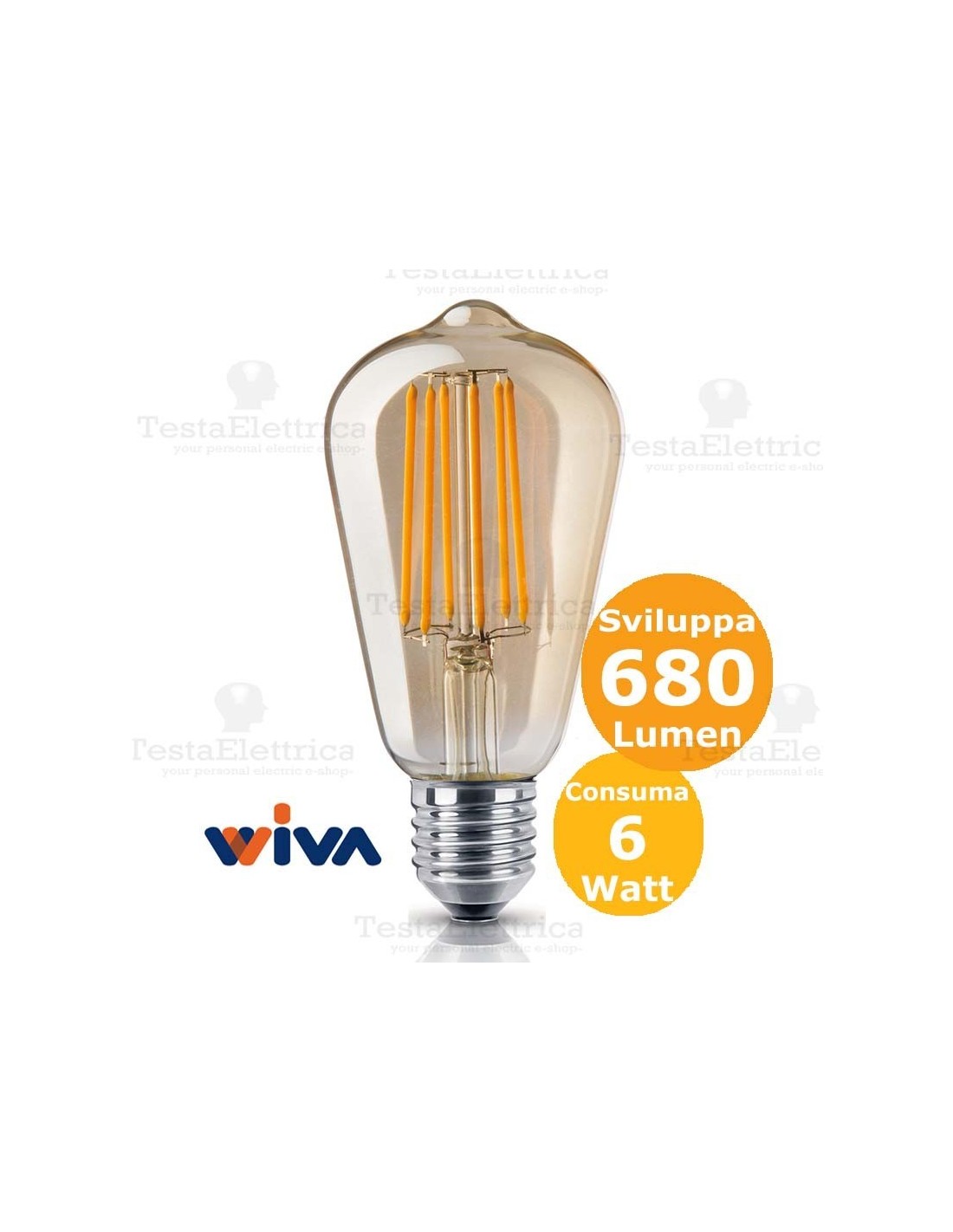 Lampadina filo led ST64 in vetro ambrato 6 Watt E27 Wiva
