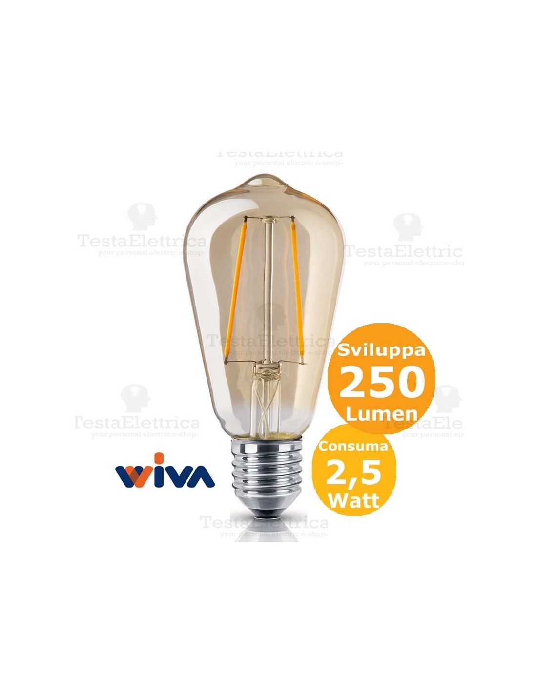 Lampadina filo led ST64 in vetro ambrato 2,5 Watt E27 Wiva