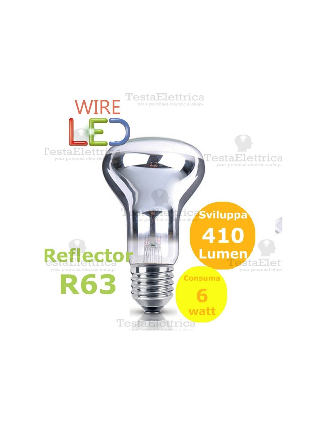 Lampada a led esattamente compatibile con le vecchie reflector R63 (63 sta per i millimetri del diametro frontale della lampada);