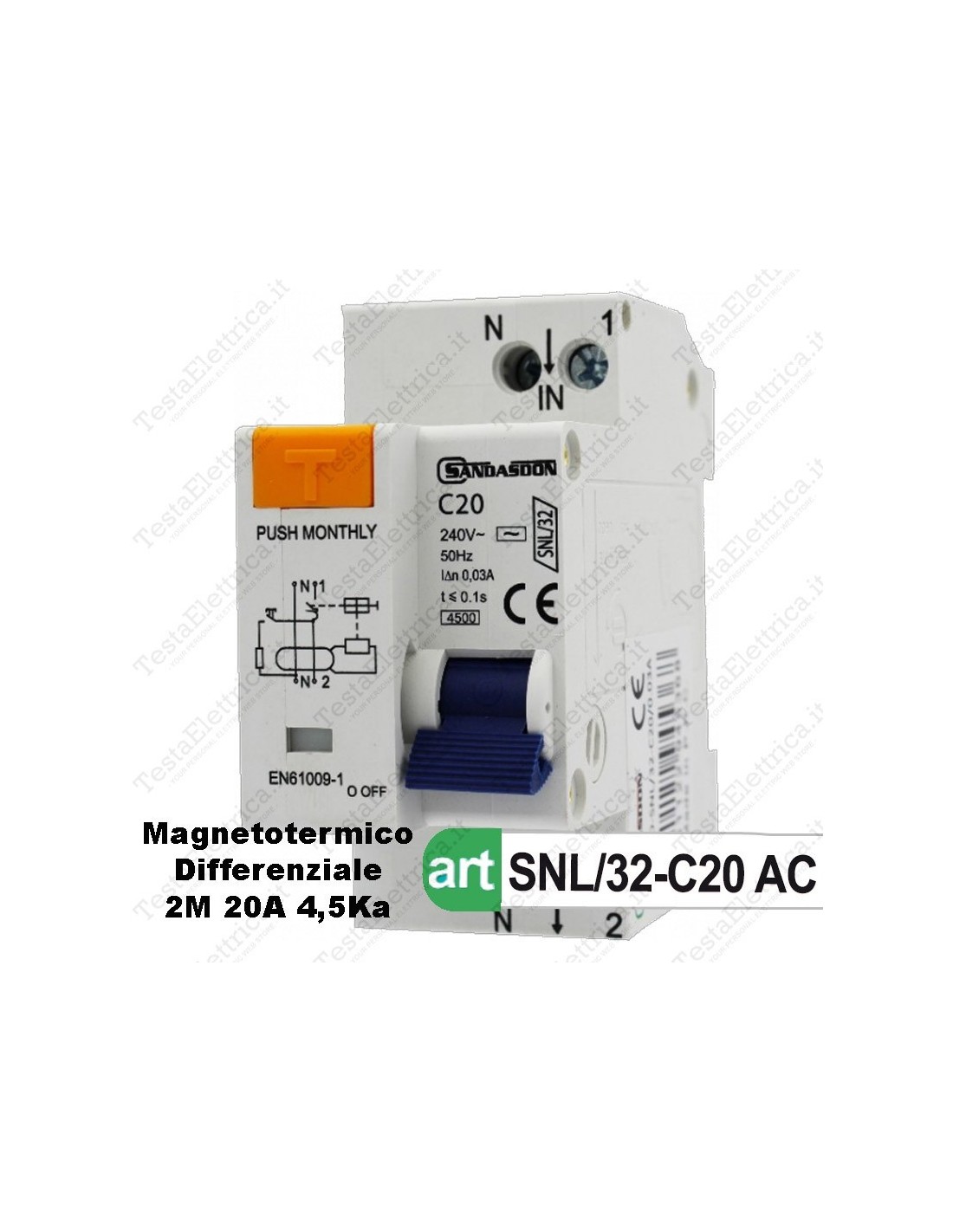 Interruttore Magnetotermico Differenziale 2M 20A 220V Sandasdon