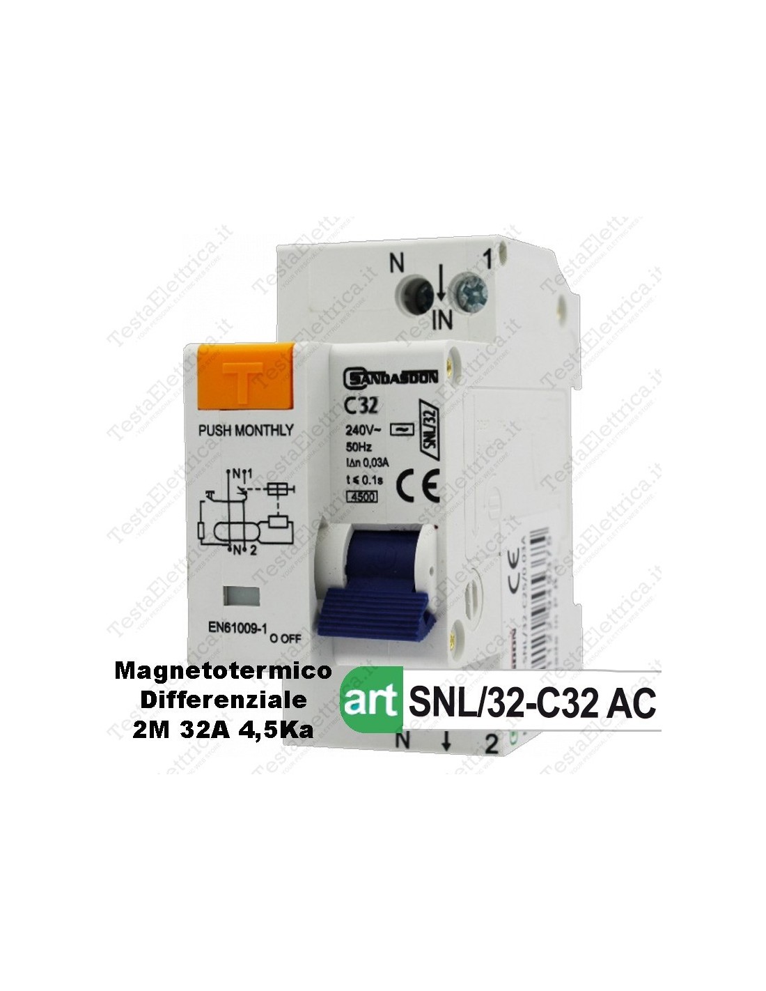 Interruttore Magnetotermico Differenziale 2M 32A 220V Sandasdon
