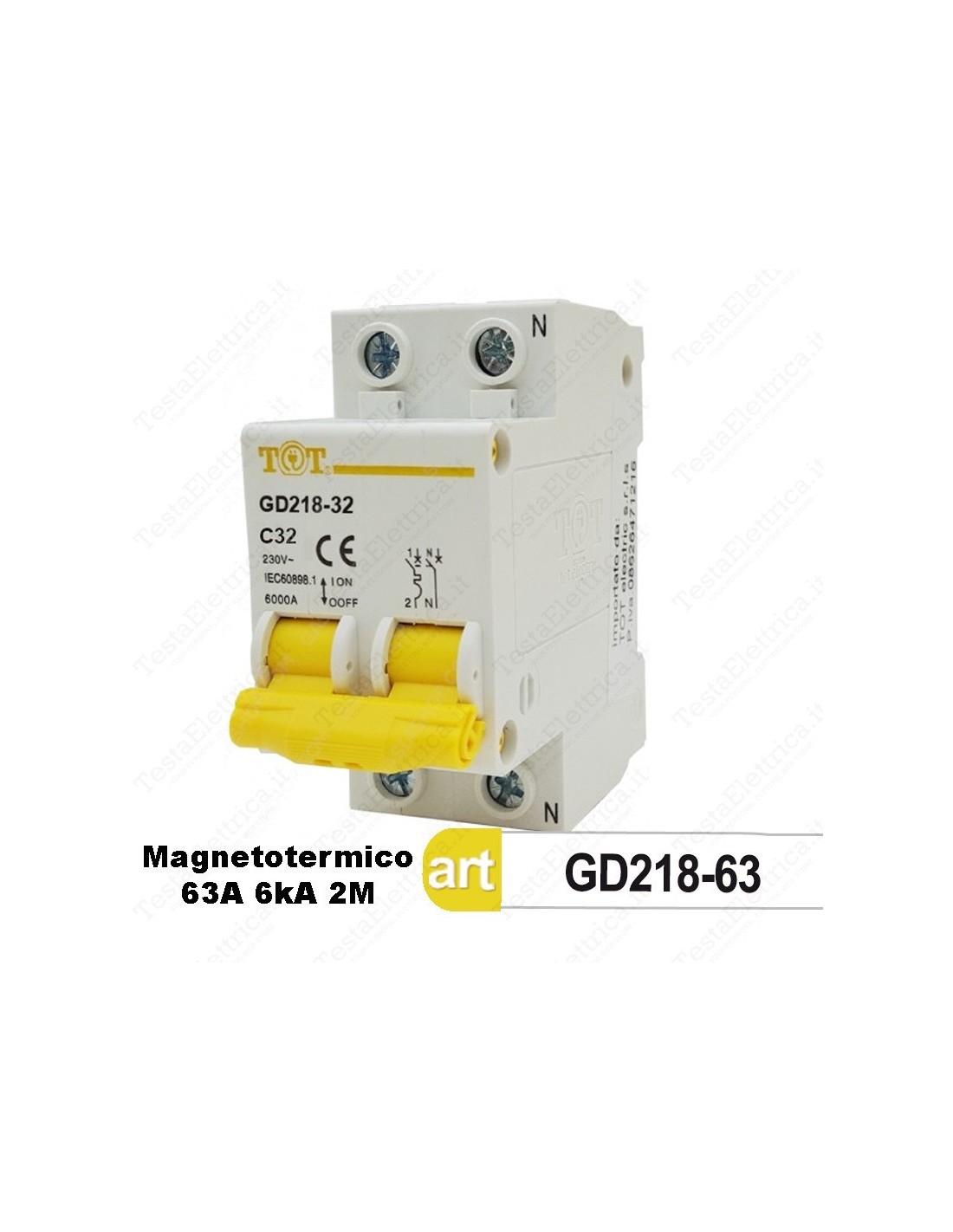Interruttore Magnetotermico 2M 63A 220V Tot Electric