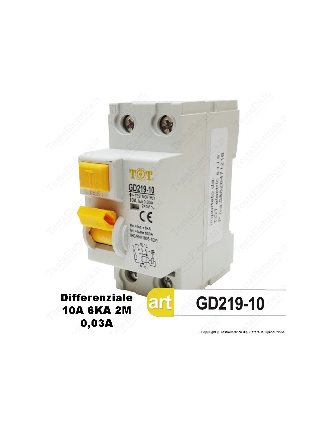Interruttore Differenziale Puro 2M 10A 220V Tot Electric