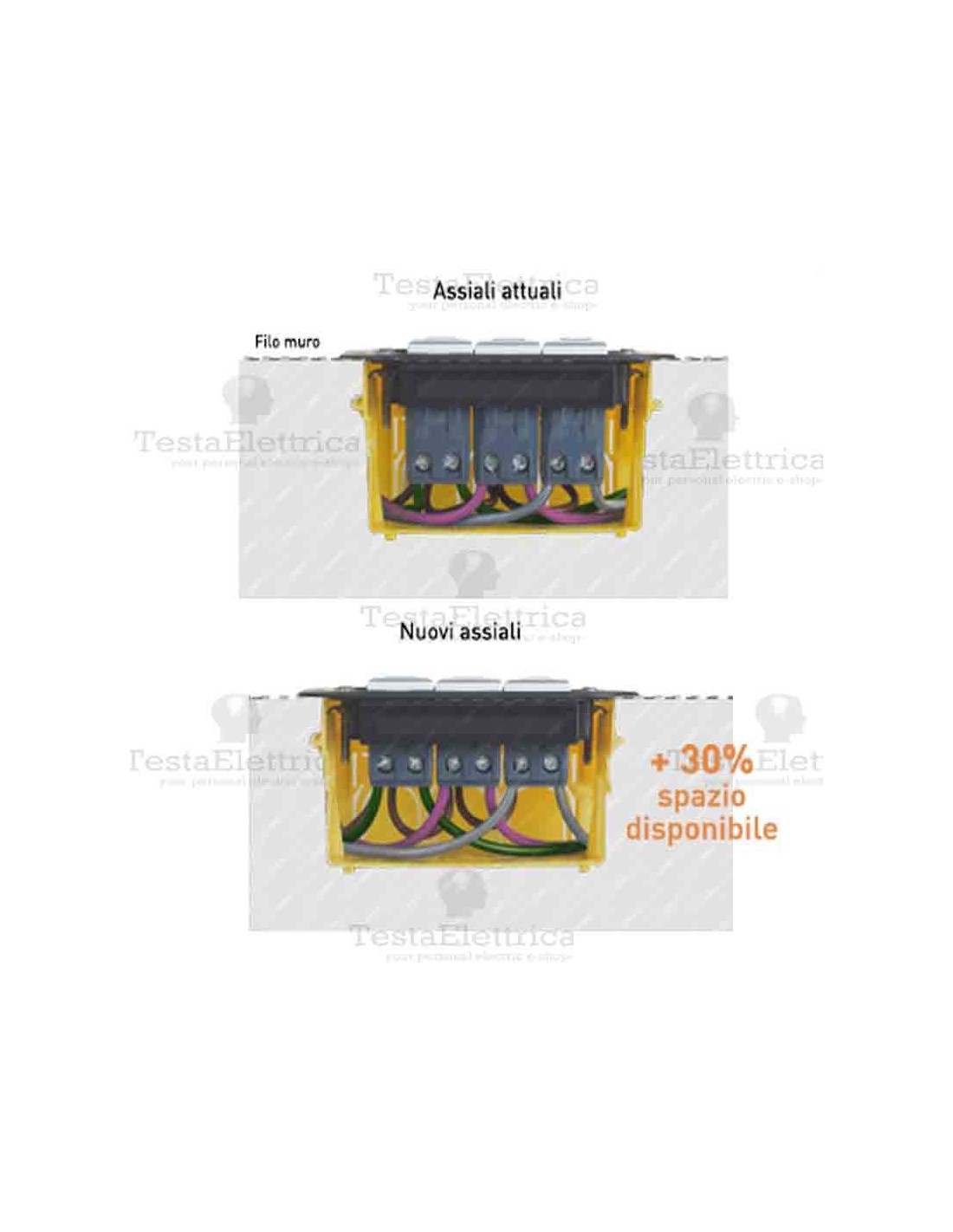 In impianti elettrici civili e professionali, nuovo frutto interruttore a profondità ridotta; modulo di comando ad innesto esclusivo in supporti dedicati linea Axolute.