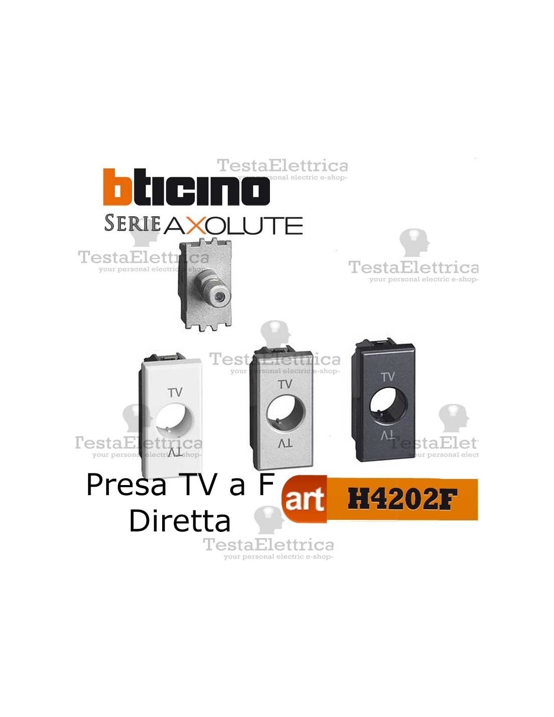 Presa coassiale TV serie civile Bticino Axolute con connettore IEC maschio in impianti monoutenza o centralizzati sia digitale terrestre che satellitare.