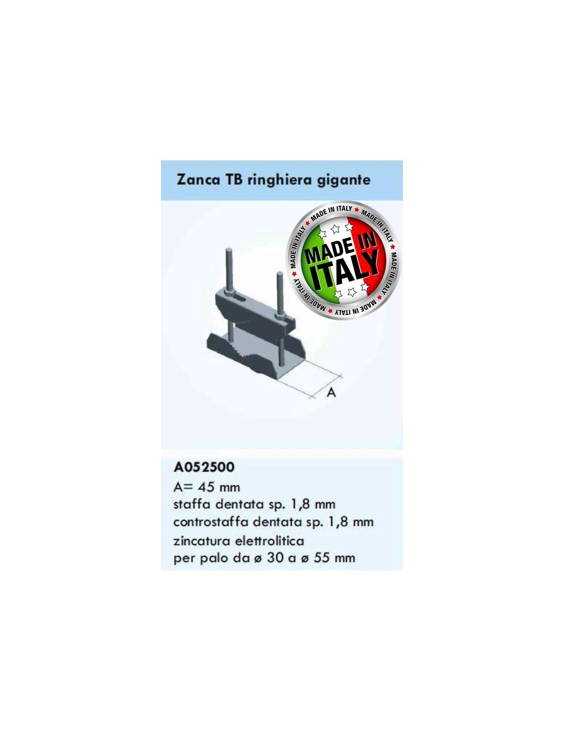 Zanca media per fissaggio palo a palo/ringhiera da ø 30 a ø 55 mm . Cavallotto M6