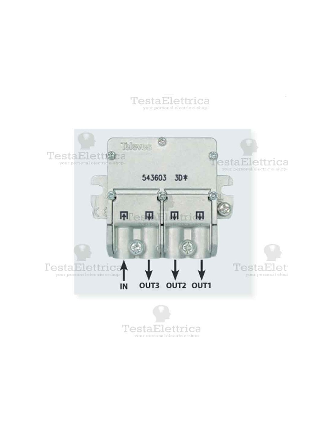 Spinotto maschio tipo salvaspazio 90° professionale Televes per cavi coassiali, dotato di blindino ad elevato potere schermante.