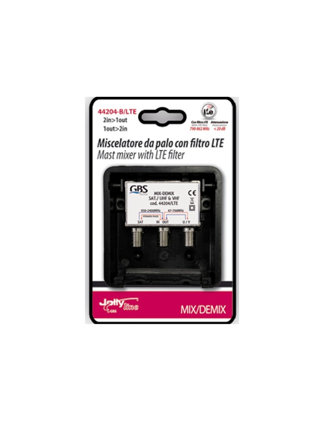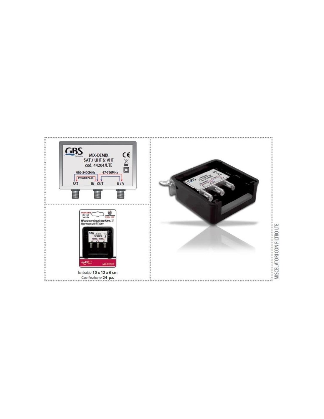 Miscelatore/demiscelatore SAT/TV con filtro LTE corredato di scatola per esterno e attacco a palo.