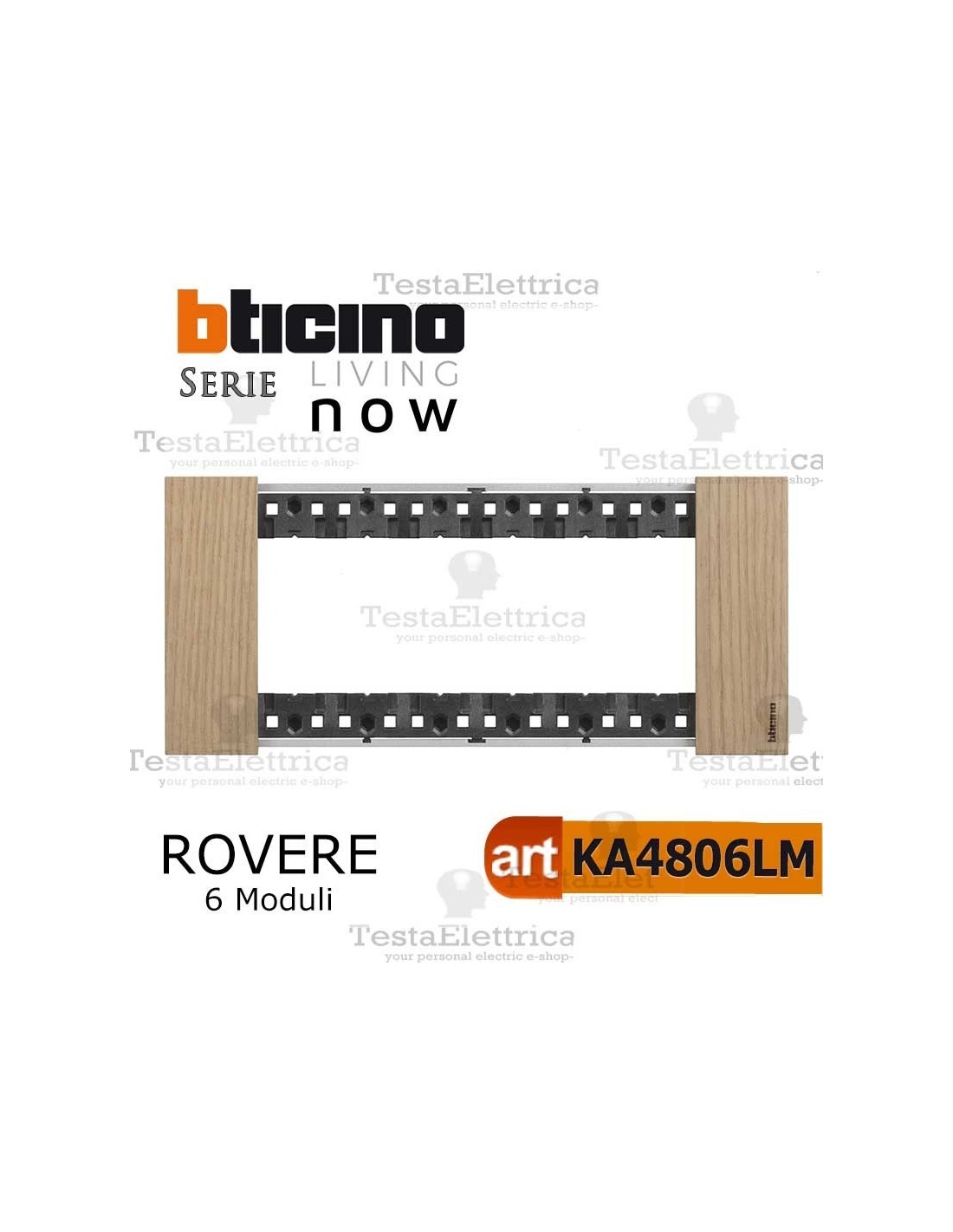 In impianti elettrici civili e professionali, elemento estetico di colore rovere a completamento di punto luce, montaggio diretto su supporto K4706, per l' innesto esclusivo di moduli e cover bticino living now.