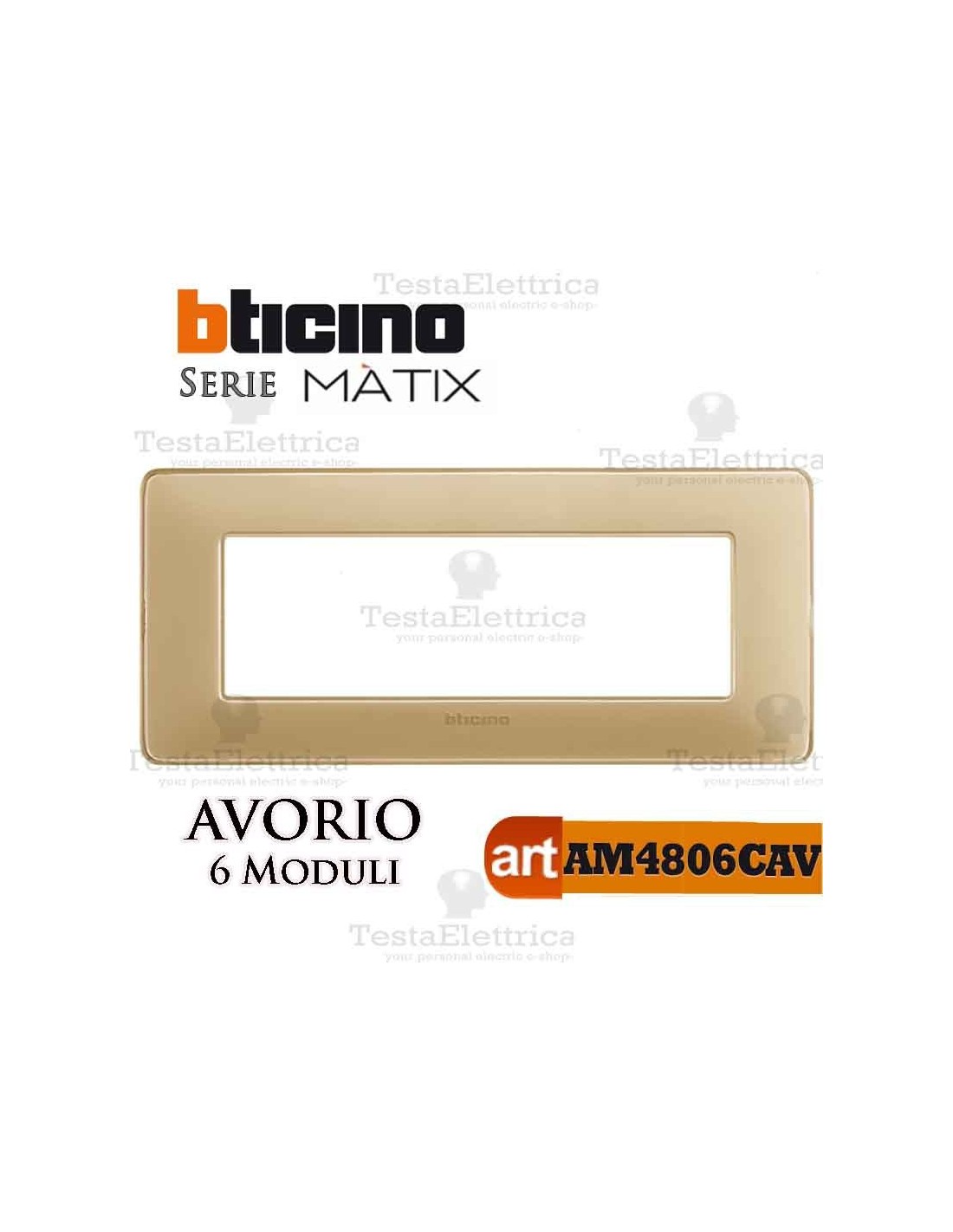 Placchetta 6 posti in tecnopolimero colore Avorio per serie civile Bticino Matix.