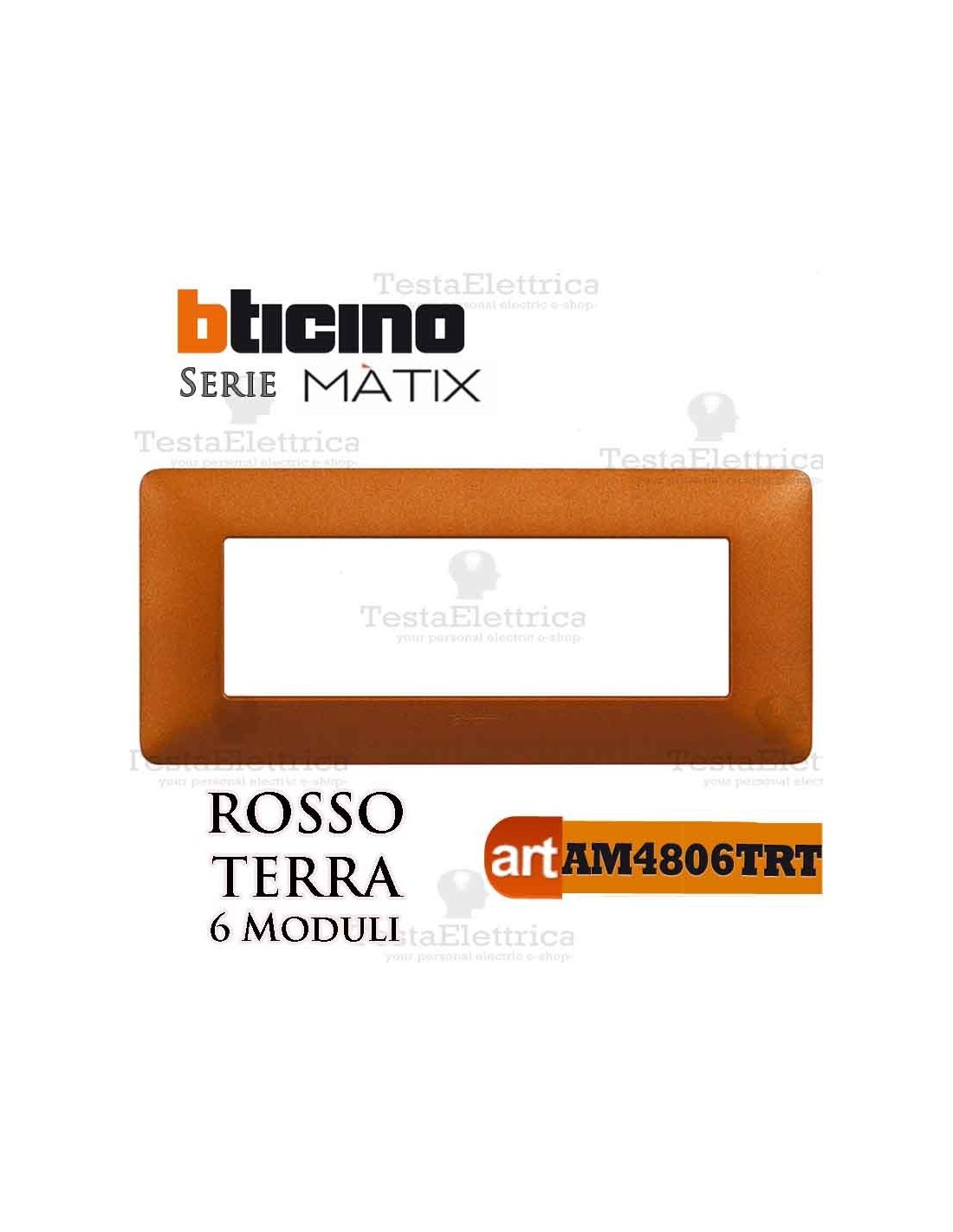 Placchetta quadra 6 posti in tecnopolimero colore Rosso Terra per serie civile Bticino Matix.