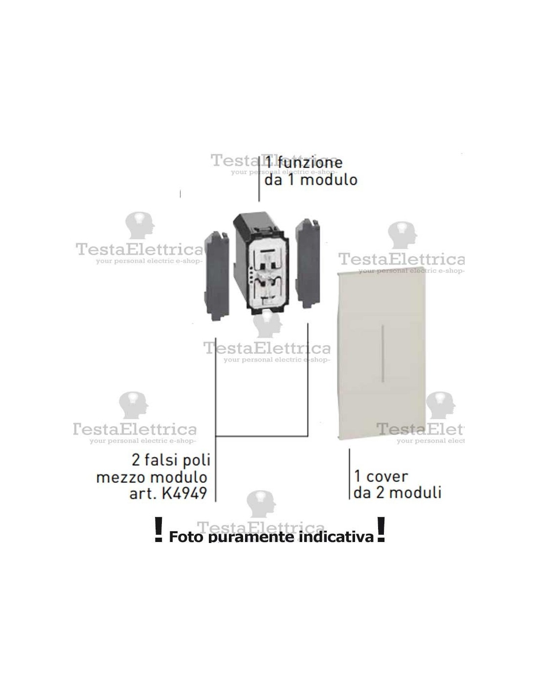 In impianti elettrici civili e professionali, copertura per frutti  art. K4001, K4003, K4004, K4004L, K4005, K4034, K4003C - 2 moduli -  Nero,  ad innesto esclusivo su placche art. K480...